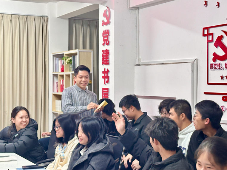 分享校园经验时,王鹏辉学长带领同学玩《抓手指》童年游戏并送上小红花,活跃现场氛围。他坦言,大学五年任班长、学生会副主席等职的学生工作,帮自己走出退伍后的迷茫;还分享摆脱游戏沉迷后深耕学业,入党并获国家奖学金,以及带队学校蝉联4×100米冠军、主编《建筑工人舞》等专业实践故事,鼓励学子勇于尝试。