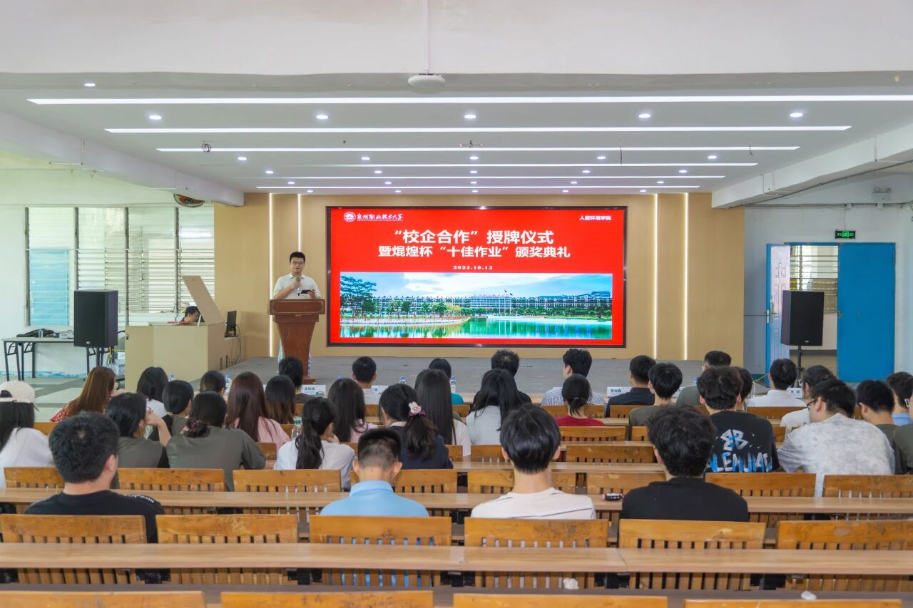 2025年10月15日,人居环境学院与厦门焜煌设计装饰工程有限公司校企合作授牌仪式暨“焜煌杯”十佳作业颁奖活动在533举行。我校教务处周燕妮副处长、人居环境学院吴铭辉执行院长、张艺能书记、关瑞明教授,厦门焜煌设计装饰工程有限公司梁立展、陈汝煌、蔡灿鑫等企业代表,以及相关师生等参加活动。活动由青年教师梁炳林主持。