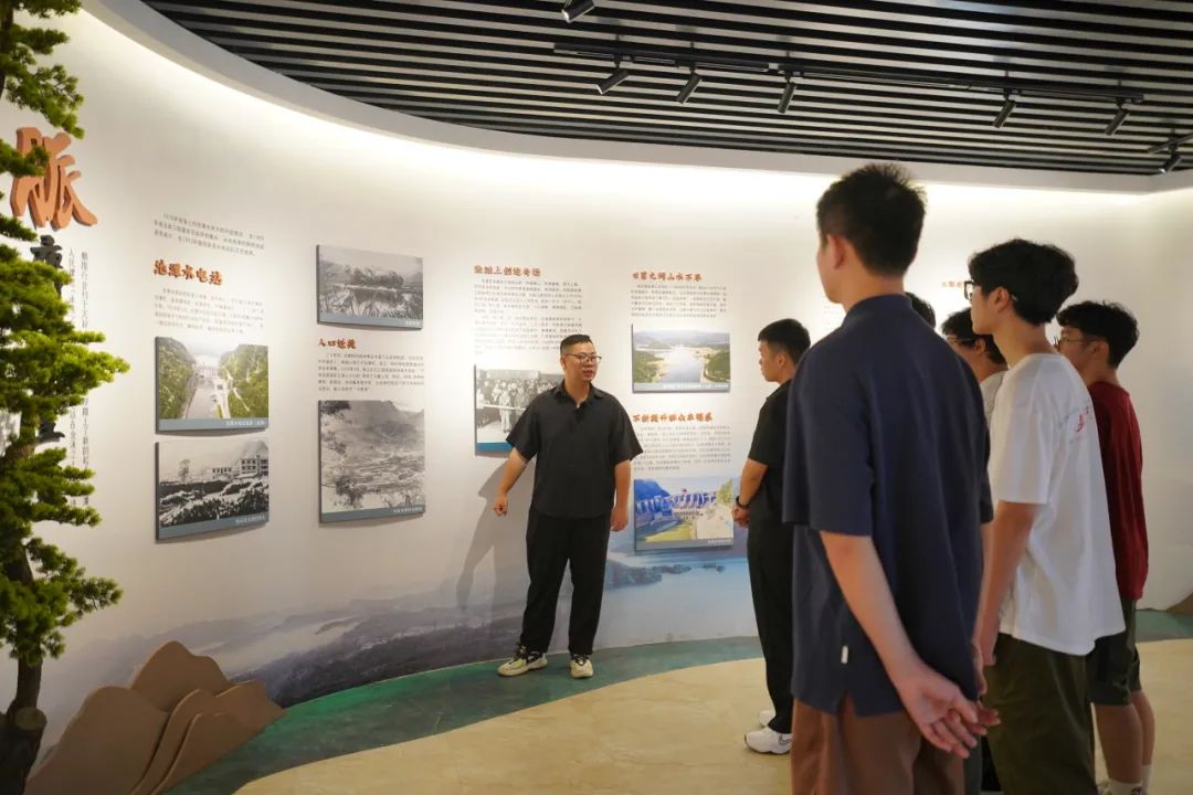 循着习近平总书记的考察足迹,实践团来到池潭水电厂。厂房内,工程师罗勇带领大家见证发电机组的轰鸣与中控屏的数据流。这座 1975 年建成的能源枢纽,曾以“点亮万家”的担当带动开善乡人口聚集、商贸繁荣,为后来影视小镇的“人气基底”埋下伏笔;如今,其硬朗的工业风与库区的山水风光相得益彰,成为影视小镇的特色取景地,持续为乡村发展注入活力。