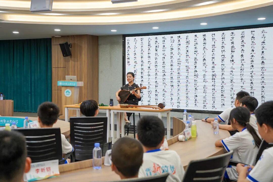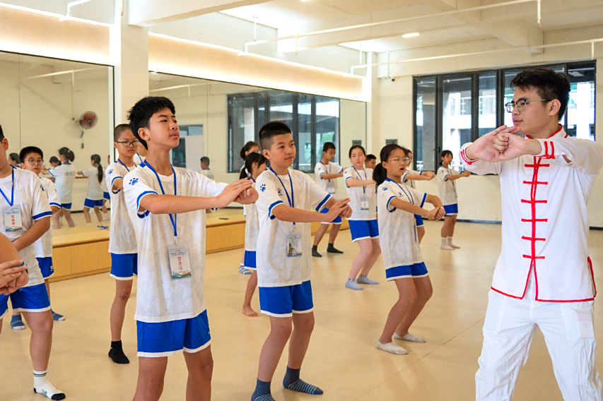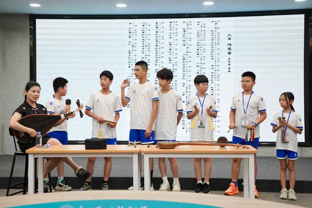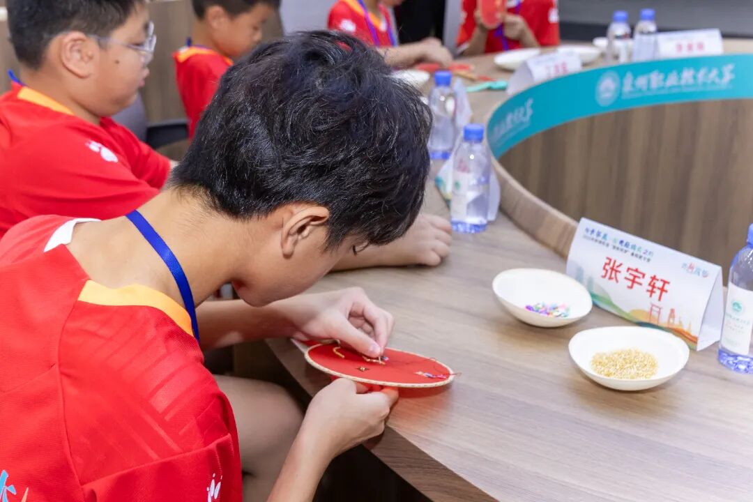 在闽南歌谣课上,苏达娜老师以游戏互动的形式,让营员们在趣味中感受方言的鲜活魅力;白鹤拳课堂上,武术老师一招一式耐心指导,营员们在一静一动中领悟传统武术的“内外兼修”;世遗南音唱腔实践课上,悠扬的洞箫声与清亮的童声交织,跟着大师学发声的营员们,用稚嫩的嗓音演绎着千年雅乐的余韵;在非遗珠绣传承人陈克忍大师的指导下,孩子们用细如发丝的绣线将彩色珠子缝制在团扇上,一针一线间,非遗技艺不再是书本上的文字,而是可触摸、可传承的文化记忆。