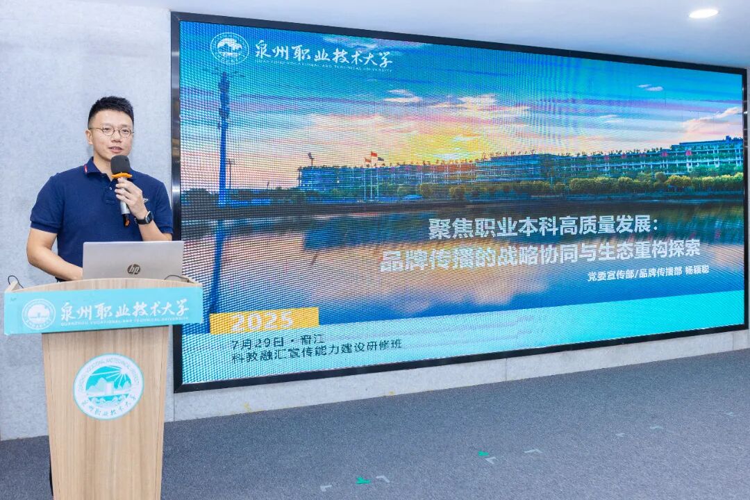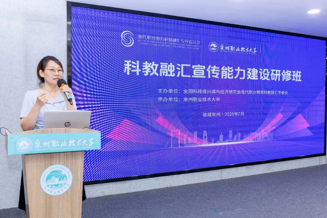 本次研修班由全国科技振兴城市经济研究会现代职业教育科教融汇专业委员会主办,泉州职业技术大学承办,既是对党的二十大“推进职普融通、产教融合、科教融汇”战略部署的具体践行,也是破解职业教育宣传瓶颈、提升科教成果传播效能的务实之举。
