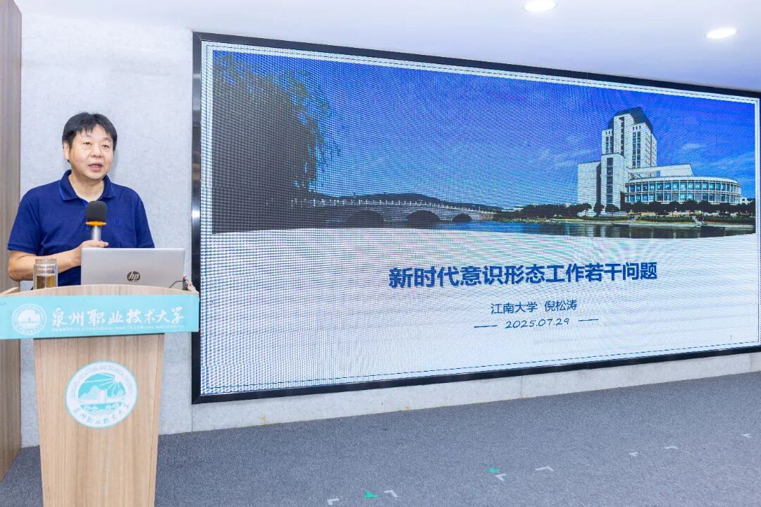 “晋江的发展,是‘产业、科技、教育’深度融合的生动注脚。”7月28日,林文艺在欢迎辞中,以“晋江经验”为切入点,勾勒出县域经济与职业教育同频共振的图景。在“晋江经验”指引下,晋江已形成覆盖“中职、高职、职业本科、专业硕博士”的完整现代职教体系,10万家民营企业与53家上市公司构建的产业集群,与国家级的晋江市域产教联合体,形成“技术革新与人才培养同频共振”的良性生态。他表示,泉大将以此次研修班为契机,分享科教融汇、产教融合实践经验,助力提升全国职教战线宣传能力。