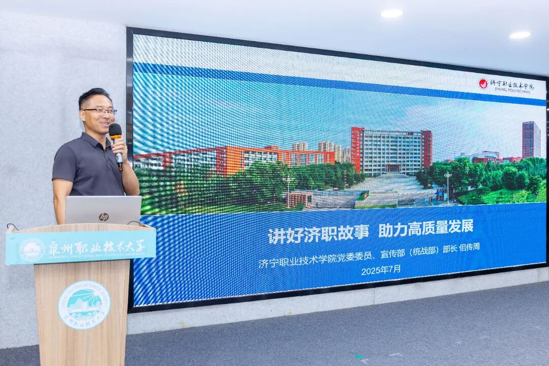 在经验交流环节中,泉州职业技术大学党委宣传部/品牌传播部部长杨颖聪,无锡职业技术大学党委副书记杨雪琴,天津交通职业学院科研管理办公室主任李靖、昆明冶金高等专科学校校团委副书记欧阳志平,济宁职业技术学院党委委员、党委宣传部部长佀传周等分别结合各校宣传工作中的实际案例进行分享与交流。