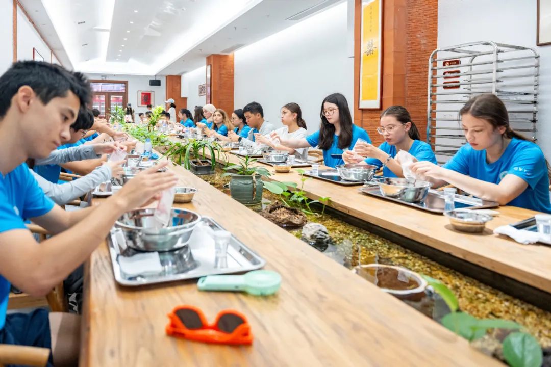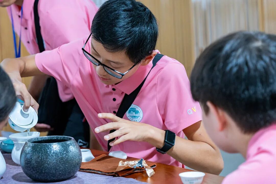 传统文化在多元场景中焕发新生。书法体验环节,营员们提笔临摹,于横竖撇捺间感受汉字结构的古典意蕴;齐声学唱闽南语经典《爱拼才会赢》,通过方言发音纠正与歌词解读,深化对“爱拼敢赢”精神的理解;安溪溪禾山茶园内,采茶、制茶、习烹茶奉茶之礼,营员们在茶香氤氲中体悟“谦敬”的待客哲学;来旺良品堂中,手作面线、体验传统花轿,解码“闽南婚俗六礼”的烟火温情。