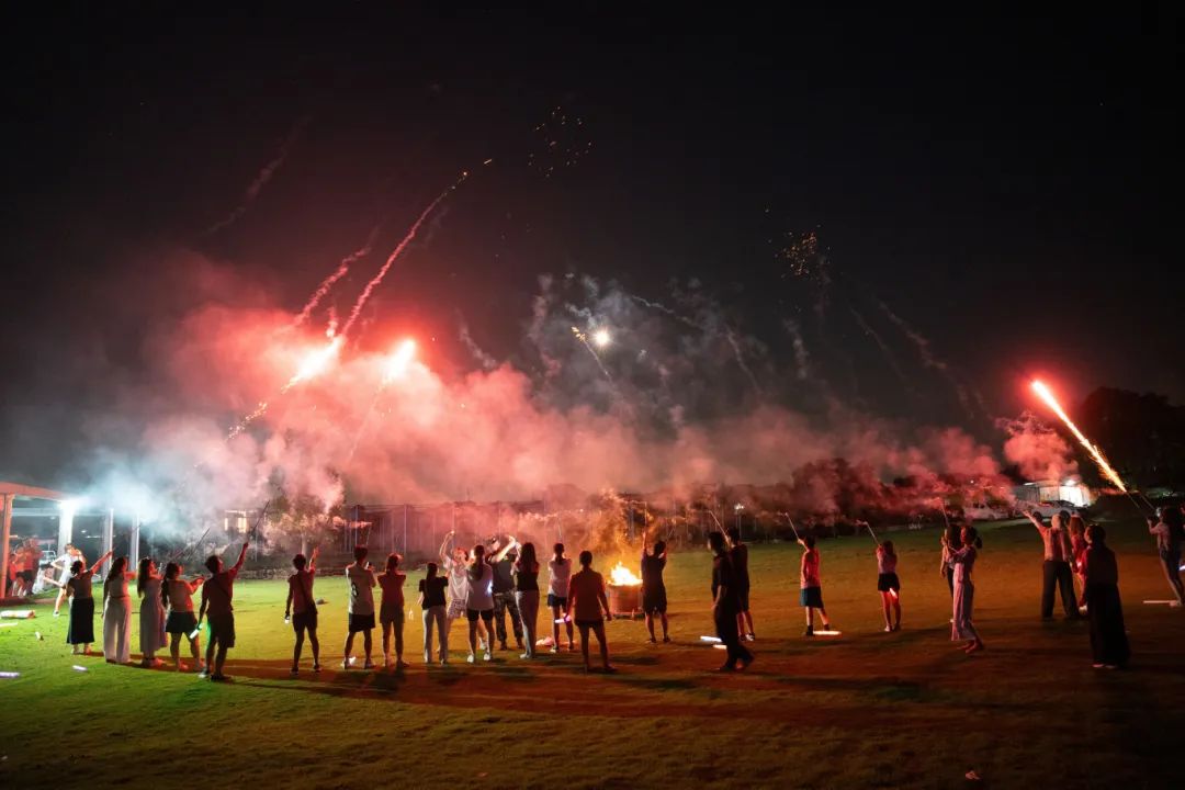 十日时光,因共同体验而温暖。开营破冰游戏中,营员们通过趣味任务打破陌生;聚龙岛飞盘竞技、水上闯关,运动场羽网飞扬,汗水与笑声交织;暮色下的烧烤围炉、夜空中的篝火烟花,将青春的热烈定格在泉州夏夜。
