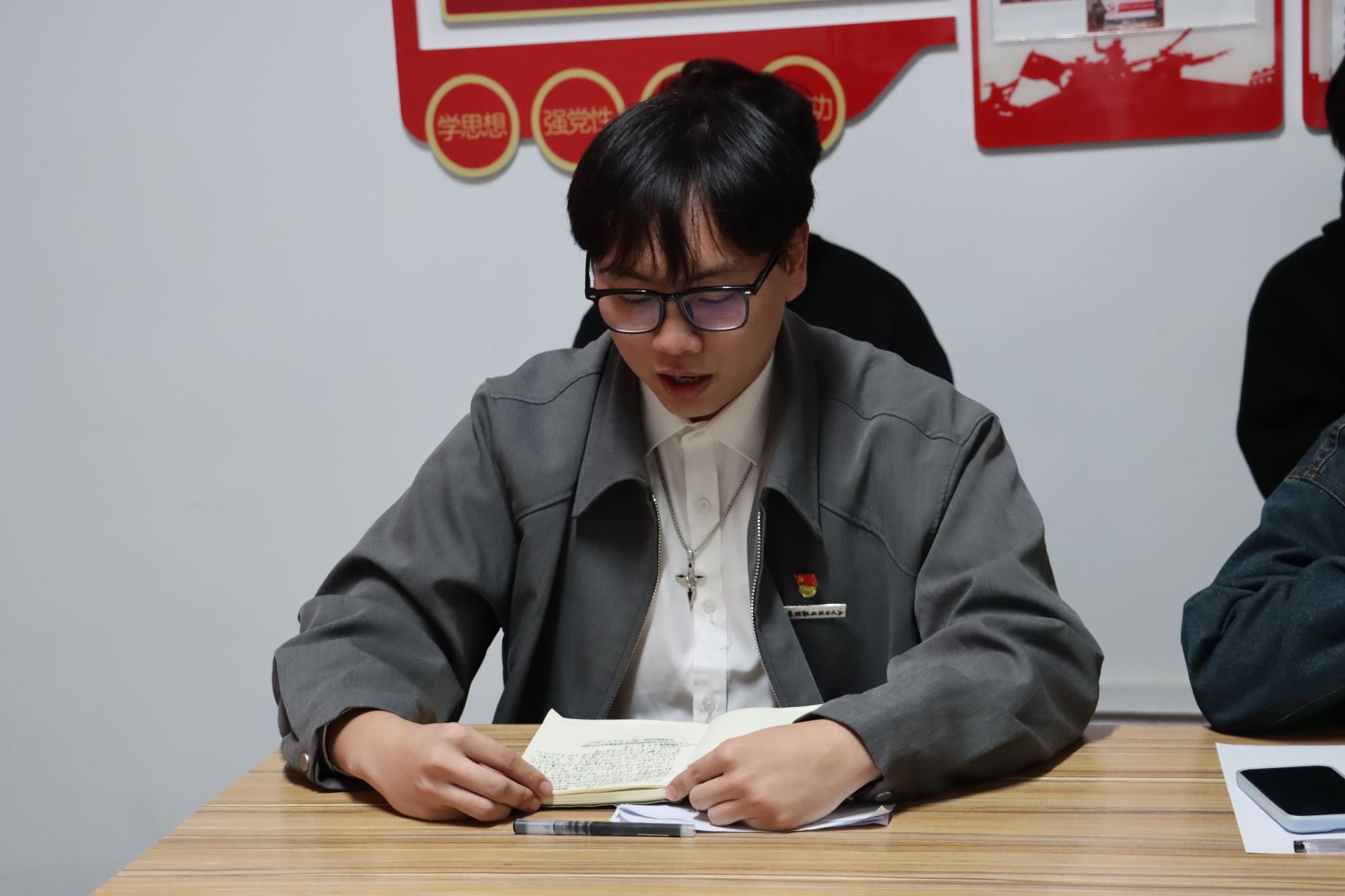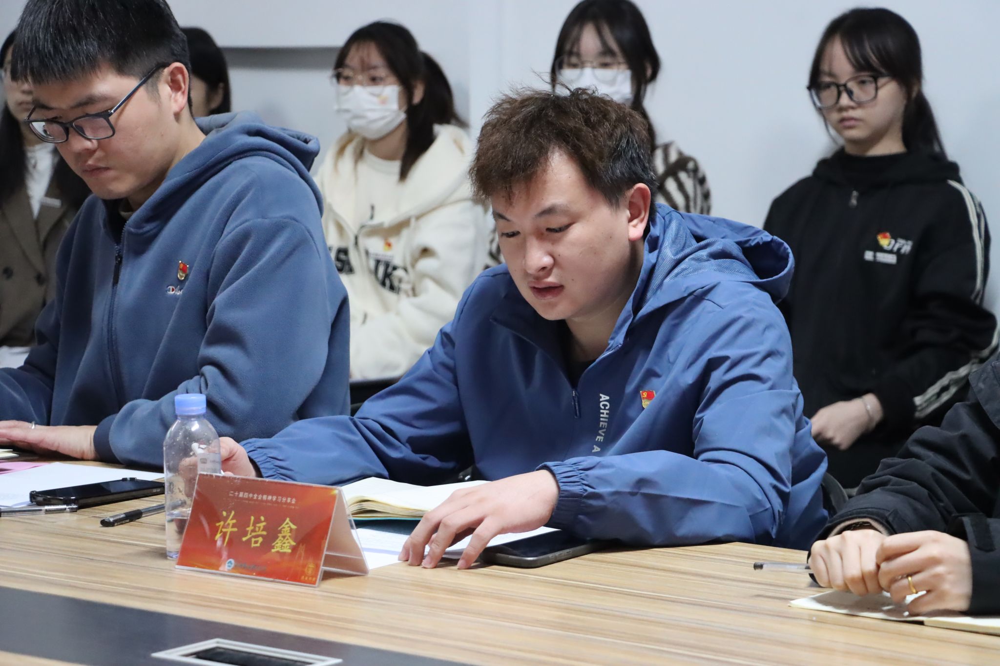 会议伊始,学生党员代表李巧玲率先分享学习感悟。她详细介绍了前期通过每周理论学习会、党员感悟分享、月度理论考核及专题授课等多种形式的学习经历,以“三新”为核心精准解读了二十届四中全会提出的“十五五”时期重要地位、六大原则、12项重大部署等核心内容。结合信安专业特色,她还阐述了青年学子践行“国之大者”的具体路径,包括钻研专业技术、参与校园安全巡检、研学行业标准、开设“安全小课堂”等,展现了当代青年将理论学习转化为实践行动的自觉。