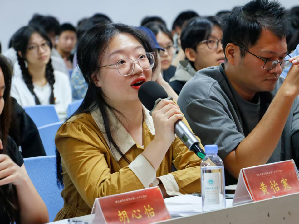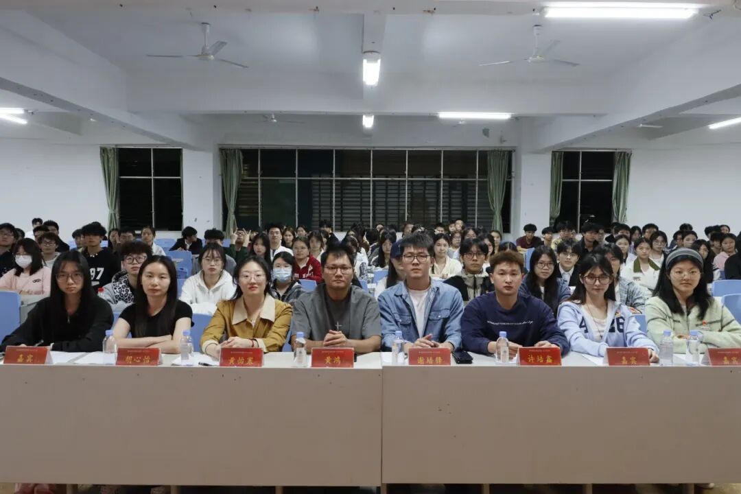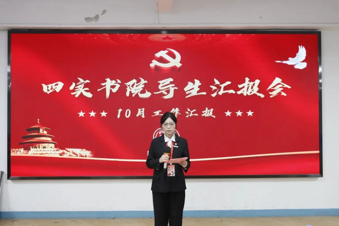 2025年11月2日晚19:00,四实书院于A201举行第九期导生委员会第一次月汇报会。出席此次导生汇报会的嘉宾评委有:四实书院党总支书记黄鸿、四实书院第一党支部书记谢培锋、四实书院第二党支部书记兼思政辅导员胡心怡、四实书院第三党支部书记兼思政辅导员黄怡寒、四实书院团委书记兼思政辅导员许培鑫。参会人员包括四实书院2025级部分新生以及党务工作室全体工作人员。本次汇报会由四实书院党务工作室主任团储备干部杨慧芳主持。