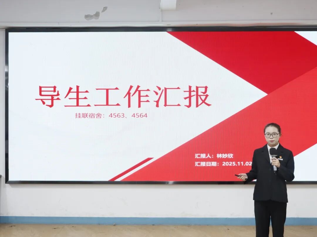 本次汇报会中,导生们详细汇报了挂联宿舍的人员情况、寝室卫生、学习状况进行了细致汇报;同时也阐述了自身工作的推进情况、取得成效以及现存问题,并明确了未来工作规划。