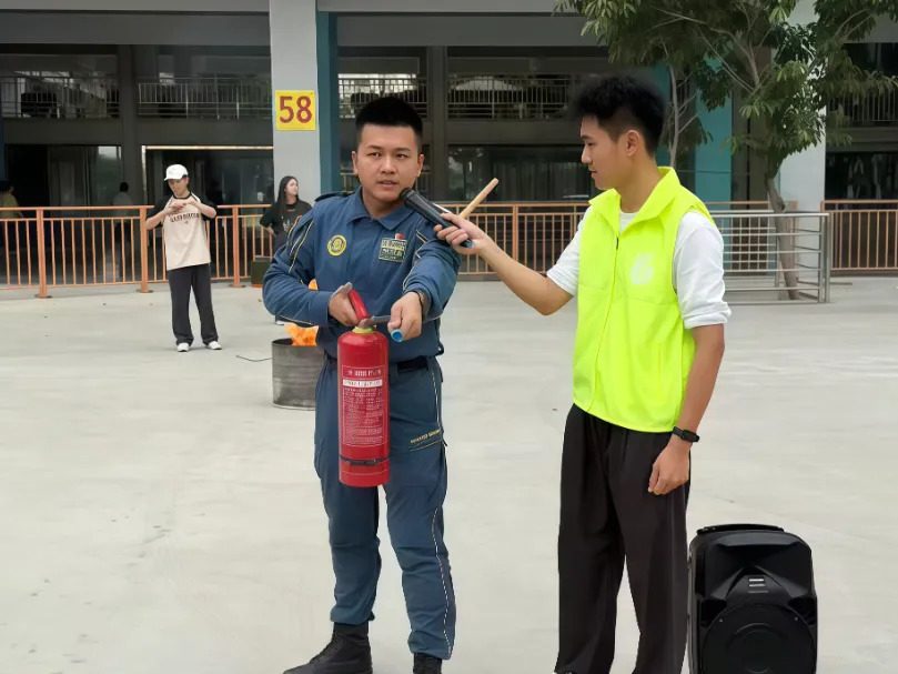 随后同学们轮番上场试用,在教官指导下亲身体验操作,把理论落地为实操。记住“提、拔、握、压”四步,关键时刻能救命!日常多留意灭火器存放位置,切勿随意挪动哦~