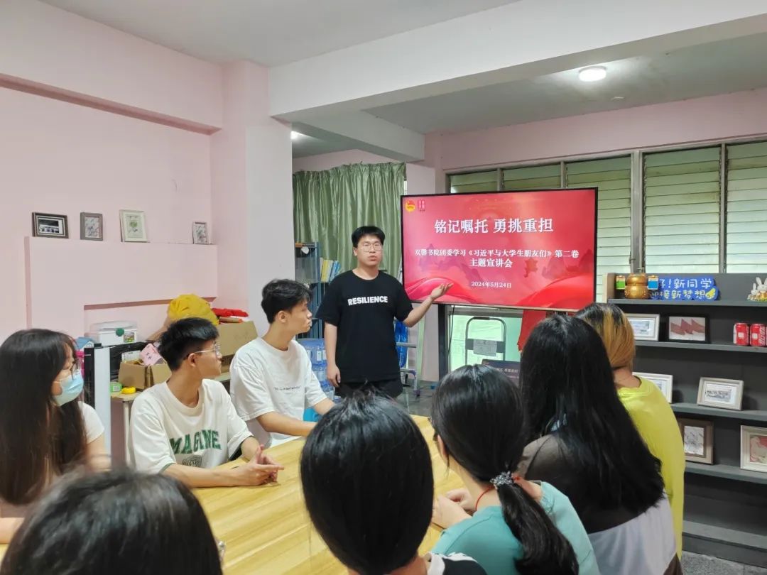 “请在青春奋斗的赛场上勇毅前行!”在担任双馨书院团委学生副书记期间,他积极贯彻落实党的二十大精神和习近平总书记的重要讲话,深入学习和开展中国特色社会主义理论体系宣传教育,以文化人和实践育人为核心,组织开展深入学习习近平总书记重要讲话精神、热议全国两会精神、雷锋精神专题宣讲会等学习会42场。