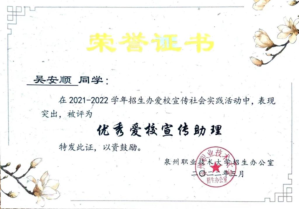 2021年10月-2024年07月 泉州职业技术大学招生办学生助理