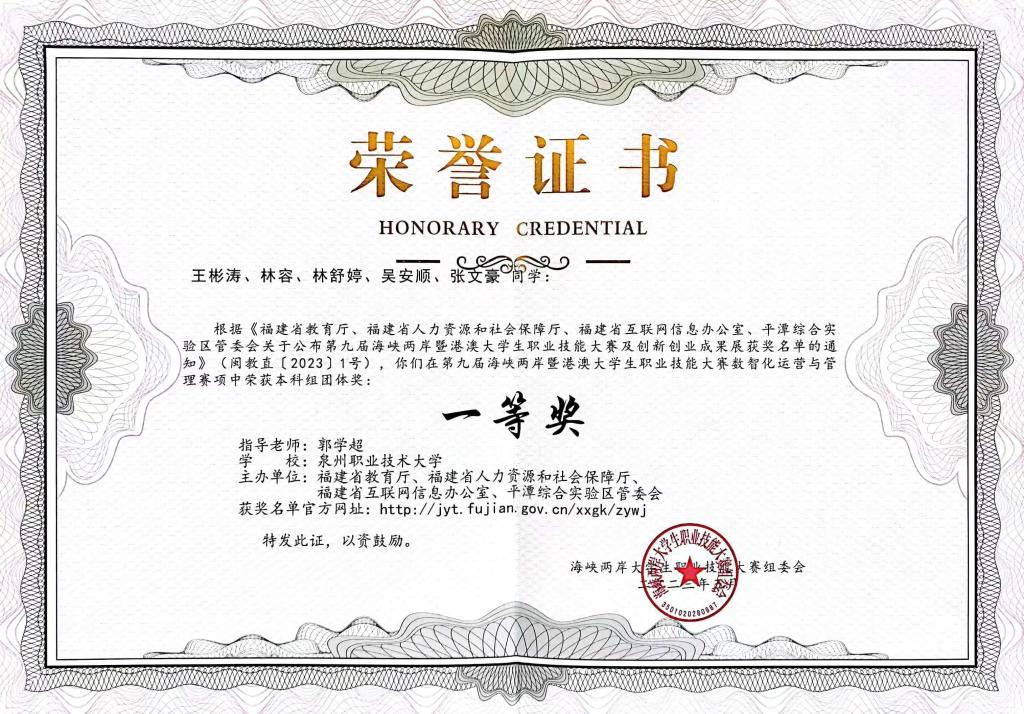 2023年05月 第九届海峡两岸暨港澳大学生职业技能大赛数智化运营与管理赛项本科组团体奖一等奖