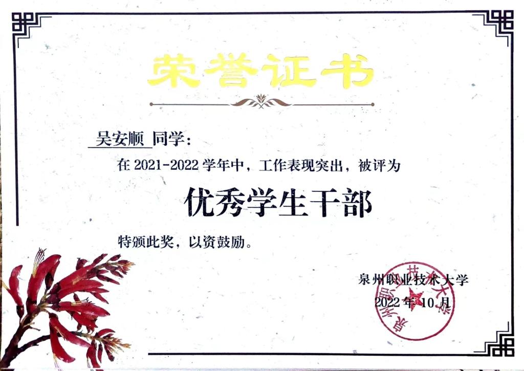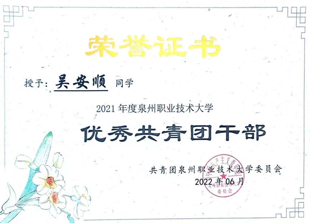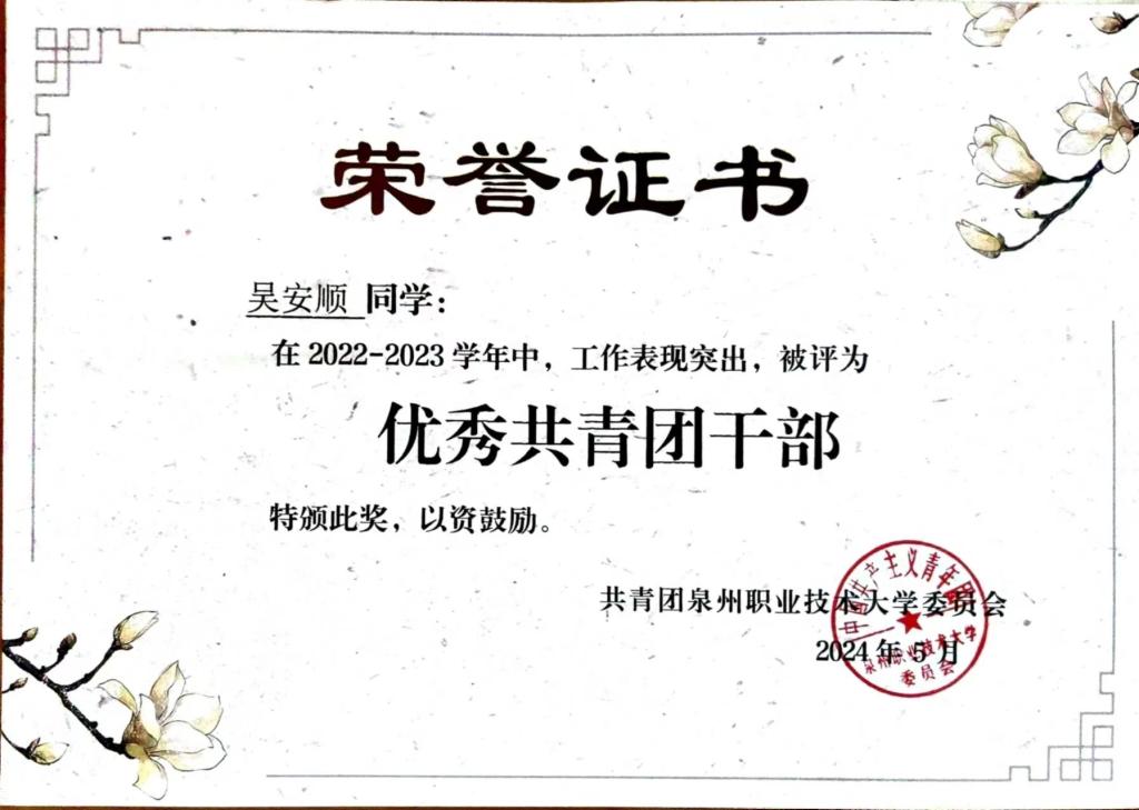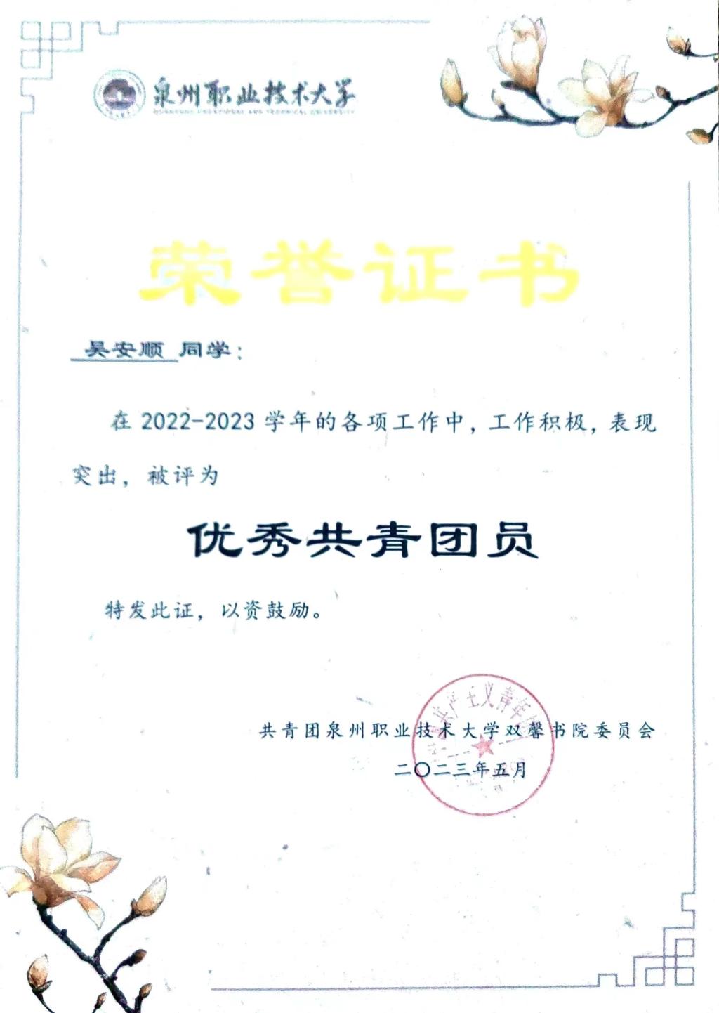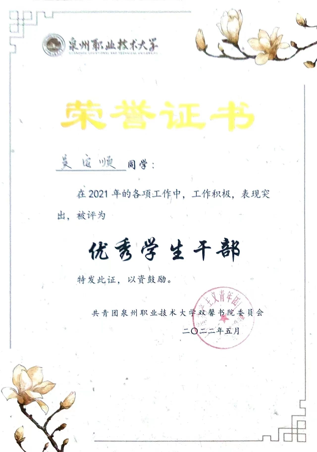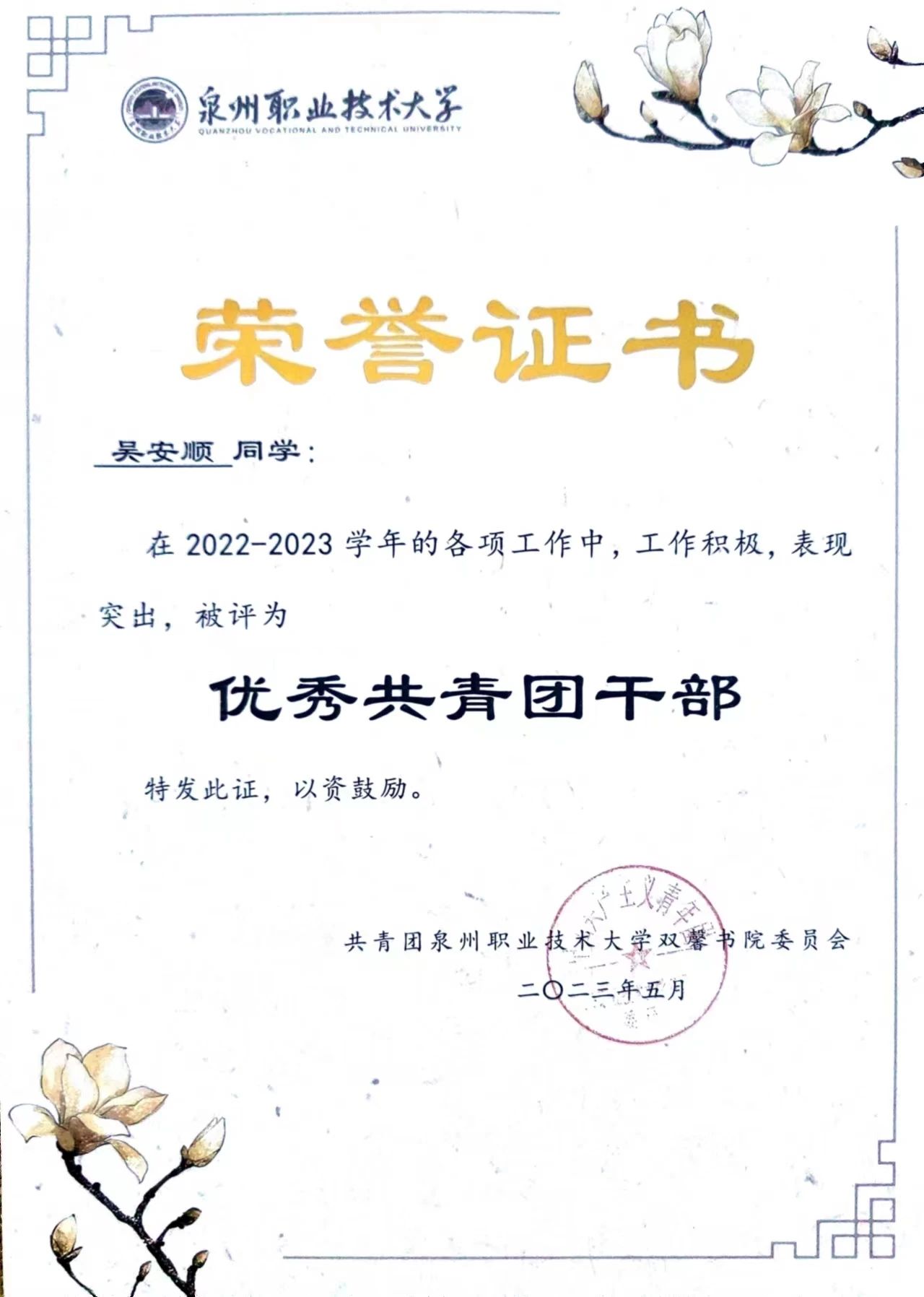 2022年07月-2023年07月 泉州职业技术大学双馨书院团委组织部部长