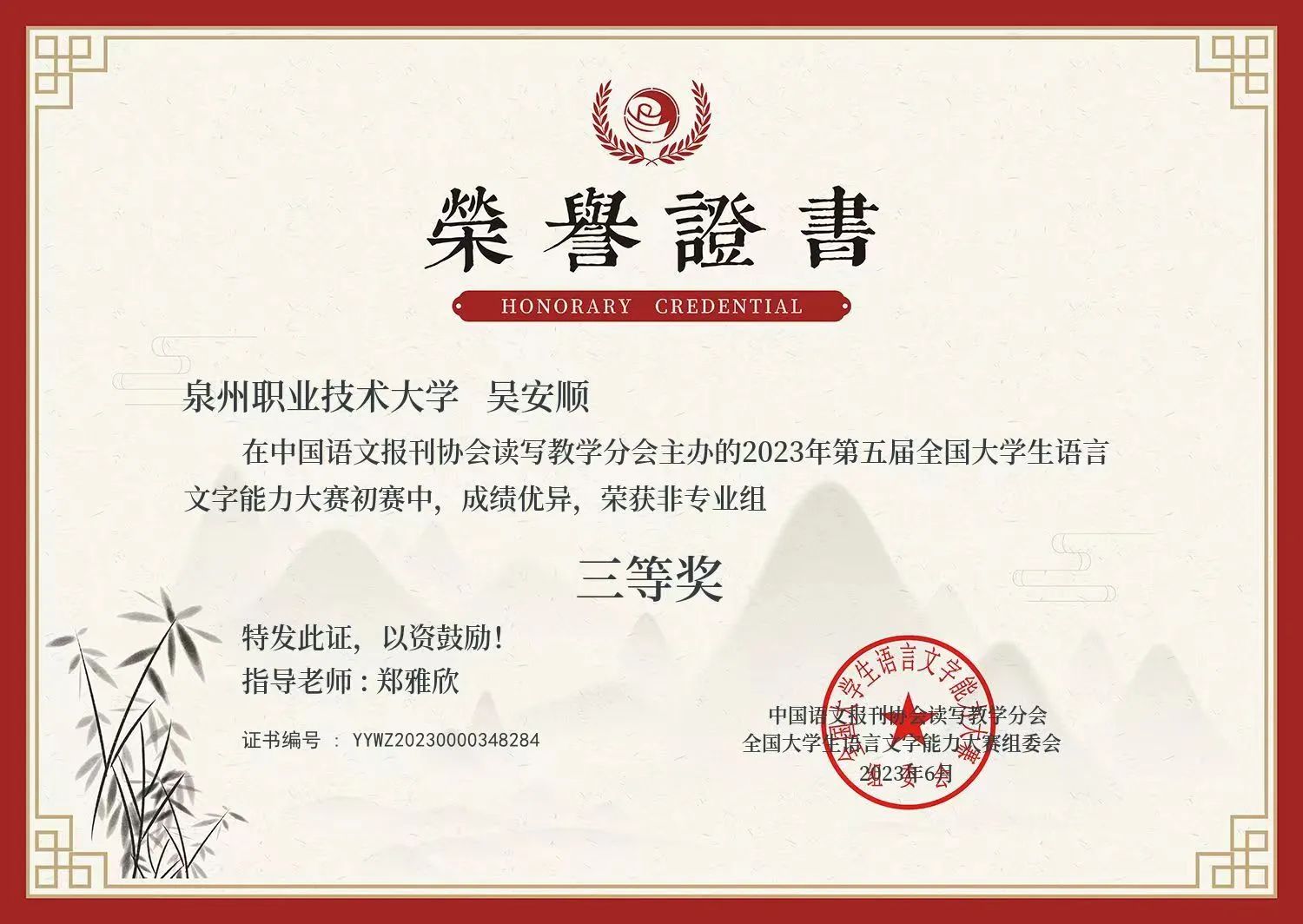 2023年06月 第五届全国大学生语言文学能力大赛初赛非专业组三等奖