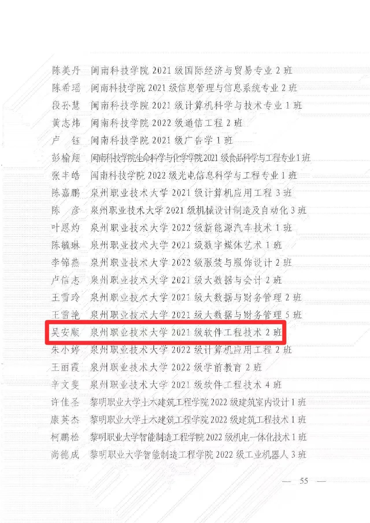 2022年09月-2024年07月 泉州职业技术大学双馨书院22级软件工程技术1班导生
