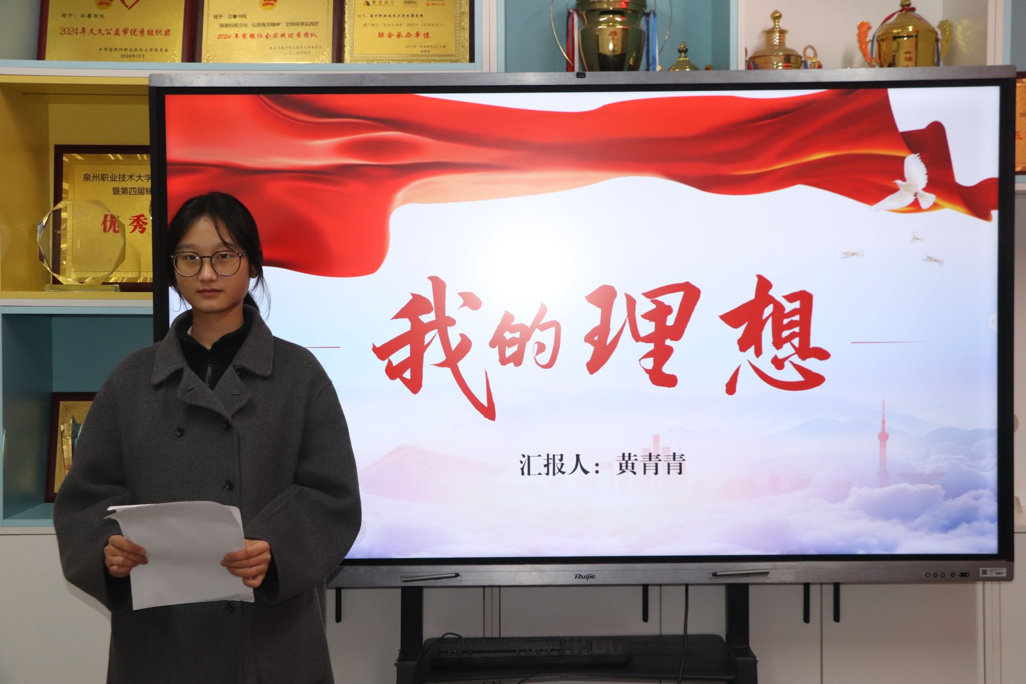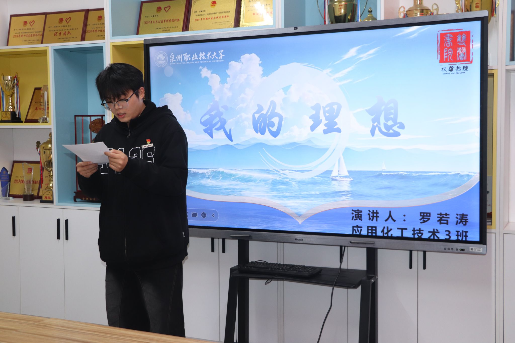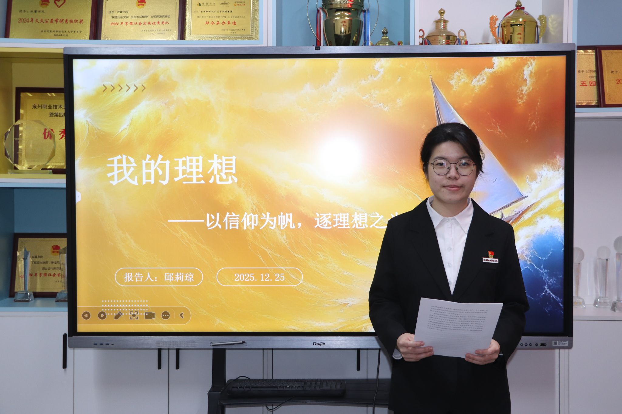 青春逢盛世,奋斗正当时。为引导广大同学树立远大理想,坚定信念,勇于追梦,泉州职业技术大学双馨书院于2025年12月25日在2122党建工作室举办了“讲理想故事,抒青年壮志”主题演讲比赛。这不仅是一场比赛,更是一次心灵的交流与思想的碰撞,为同学们提供了展示自我、表达心声的舞台。
