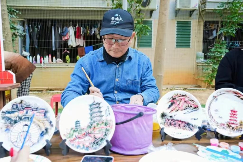 (“非遗进校园”书院活动中吴康为老师指导绘制陶盘)