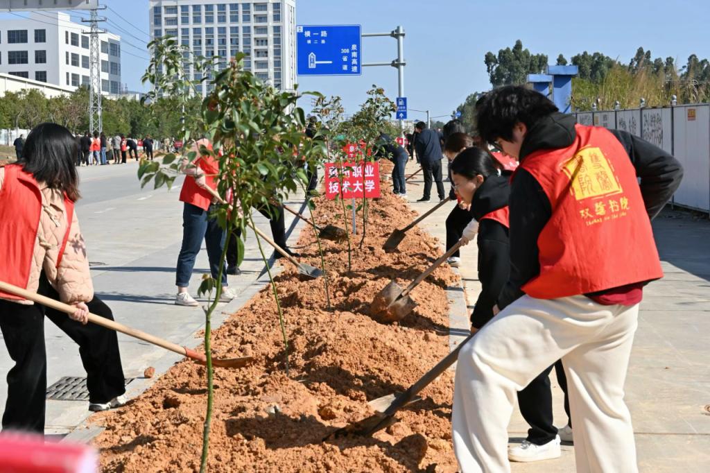 植新绿,寓希望。在植树的过程中,大家通力协作,细致分工,用行动栽植希望、传递力量。道路两侧,一棵棵树苗扎根沃土,错落有致,放眼望去,处处焕发着勃勃生机。