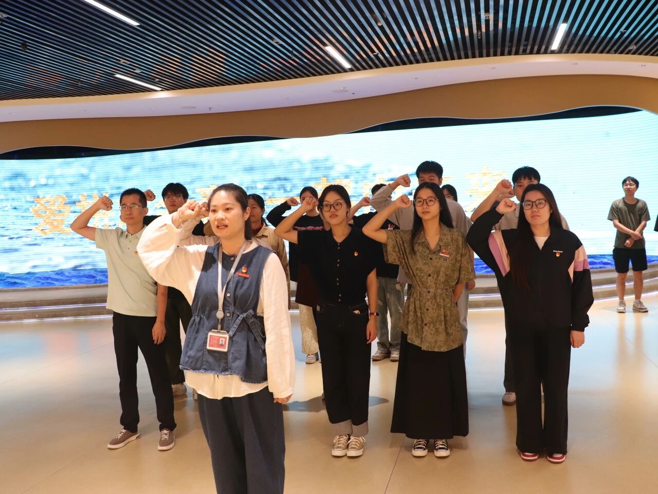 参观结束后,全体师生党员面向鲜红党旗庄严肃立,庄严举行入党宣誓仪式。仪式由双馨书院党总支书记兼院务主任罗永珍同志领誓,阵阵铿锵有力的誓言回荡在场馆内,不仅是对入党初心的重温,更是对使命担当的再次承诺。入党积极分子在旁全程见证宣誓过程,深受感染与激励,进一步坚定了向党组织靠拢、为党和人民事业奋斗的决心。