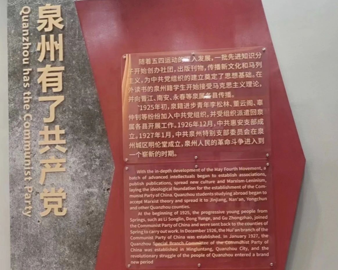 在第一个展馆中她先介绍了泉州建党工农运动,让我们明白了这场运动的意义——为泉属地区党组织建设打下了坚实的基础。紧接着是中共泉州中心县委的成立。