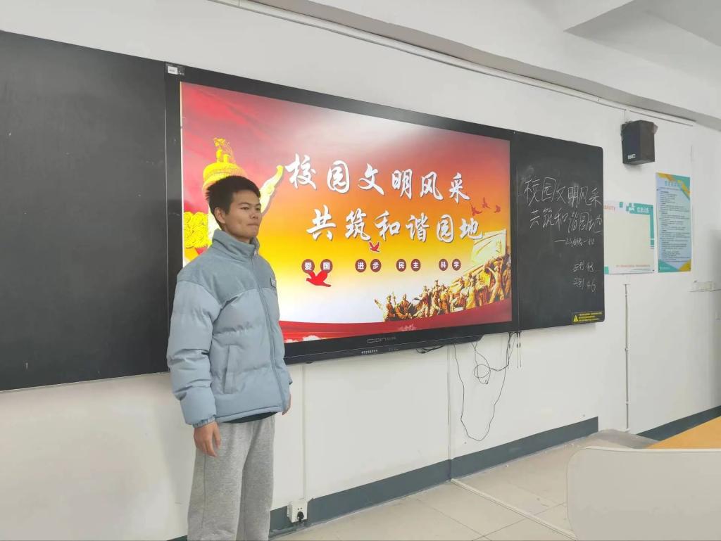 为提升同学们的文明意识,探讨和谐校园建设,促进交流合作,增强班级凝聚力,引导良好行为习惯。特此,双馨书院2023级全体学生于2024年3月03日晚,在各班责任教室开展以“校园文明风采,共筑和谐园地”为主题的主题班会。