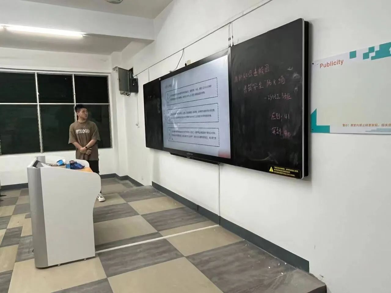 消防安全,人人有责,人人可为。为了让学生们树立消防安全意识,了解如何预防火灾的发生,如何报警,以及在火灾中如何自救、互救等消防知识,提高学生的自护、自救能力。特此,双馨书院2023级全体学生于2024年3月31日晚,在各班责任教室开展以“消防知识进校园 共筑安全“防火墙””为主题的主题班会。