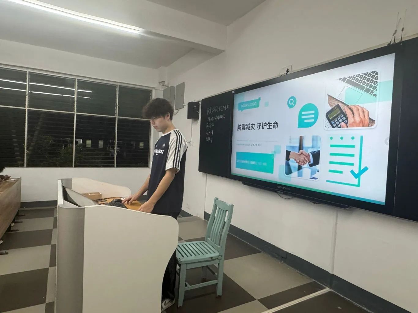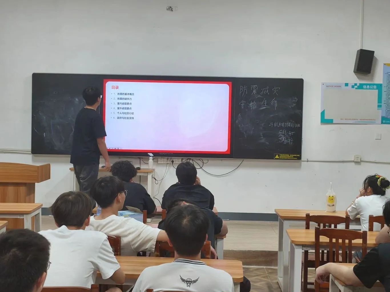同学们通过 PPT 与地震科普视频,从地震原理、灾害特点讲起,向同学们详细介绍地震相关知识。随后,针对地震发生时在不同场所的避险方法,如室内如何寻找安全角落、室外怎样远离危险区域等。问答环节气氛热烈,同学们踊跃提问,如“地震预警时间有多久”“地震后如何进行心理调适”等。主讲人结合实际案例,一一耐心解答,加深了同学们对防震减灾的理解。