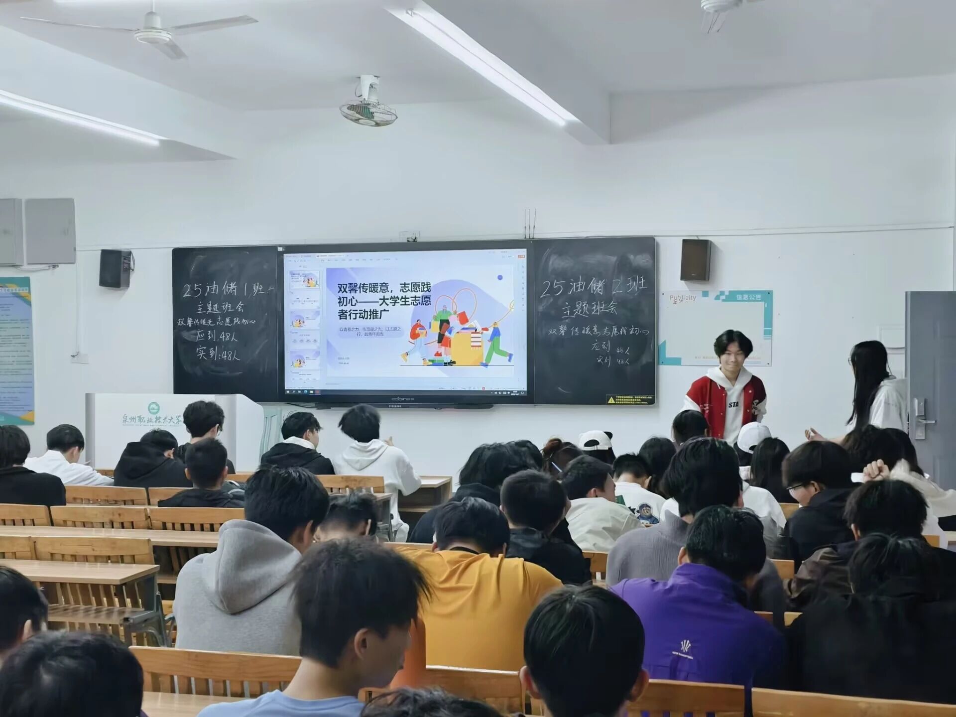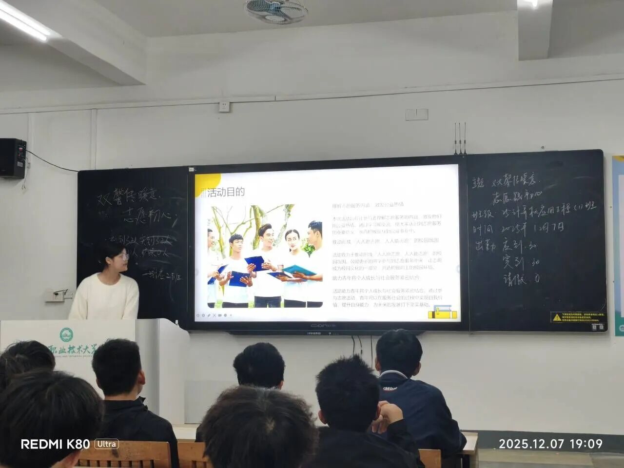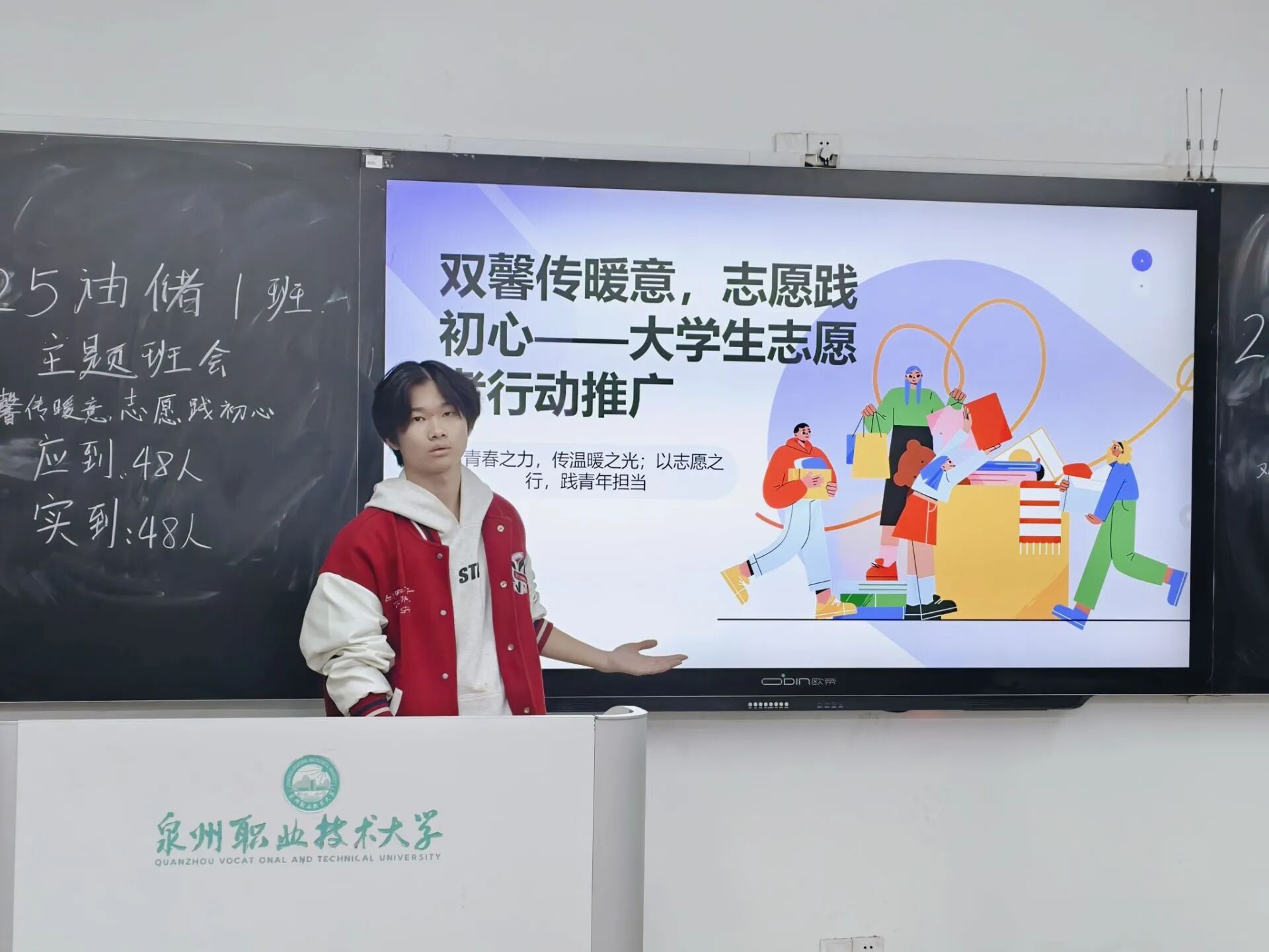 本次主题班会中,各班分别通过PPT、视频等形式向同学们生动讲解了志愿服务的核心内涵与实践价值,从“什么是志愿精神”的基础科普,到校园内“社区敬老”“赛事保障”等典型志愿场景解析,再到志愿活动安全规范与服务礼仪的细致指导,内容层层递进,让大家充分理解志愿意义,号召大家践行奉献初心,牢记服务准则,掌握实践技巧,不辱志愿使命,用暖心行动传递社会温情。