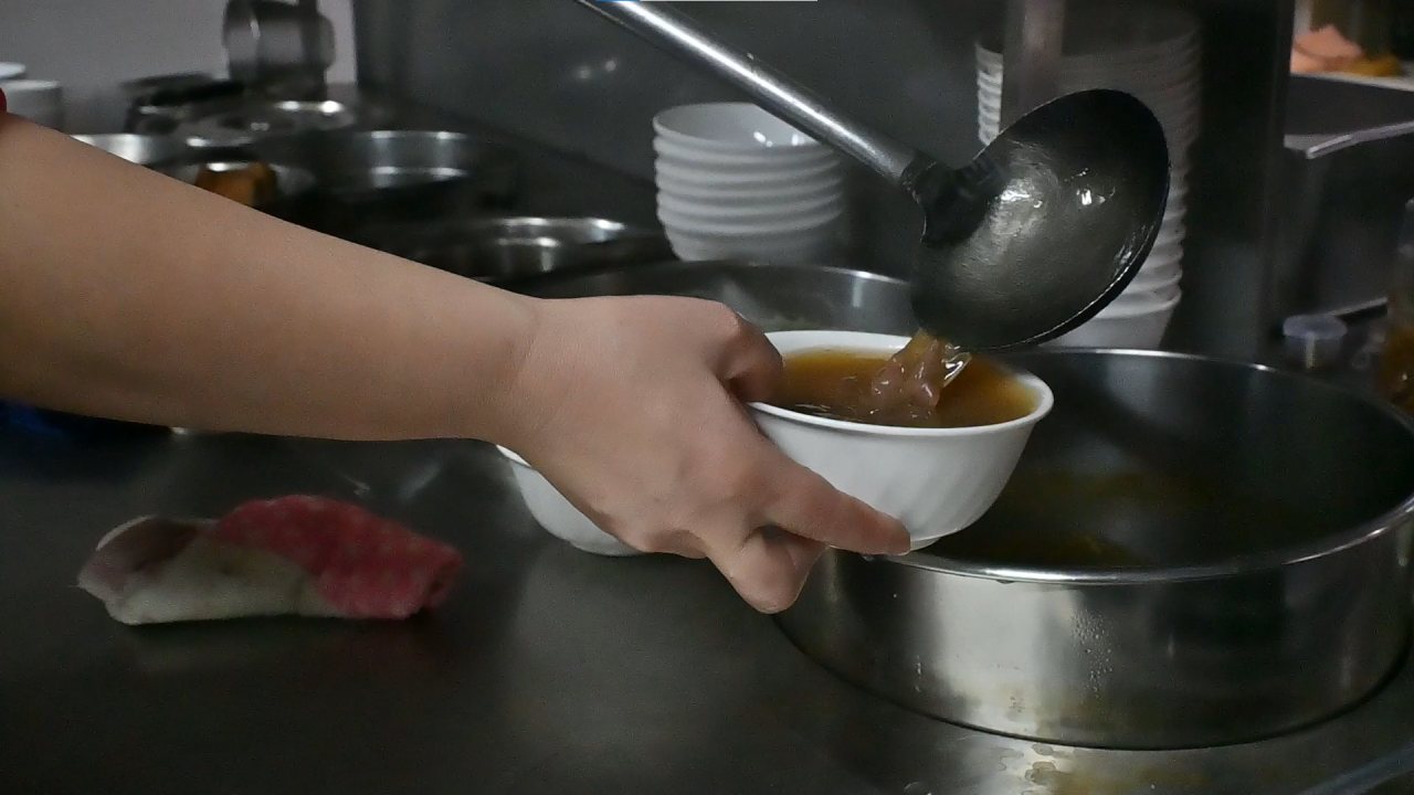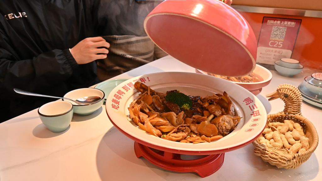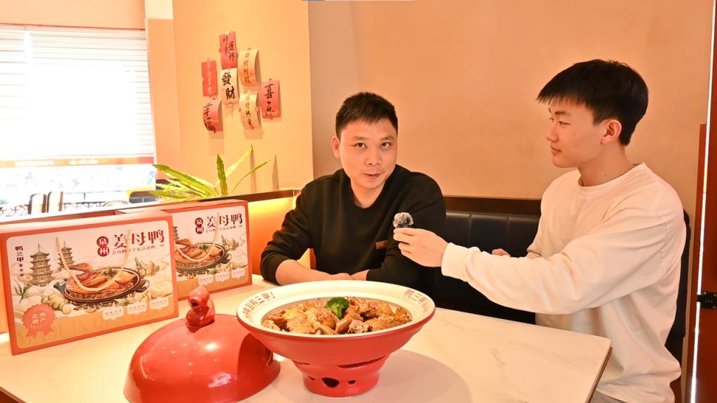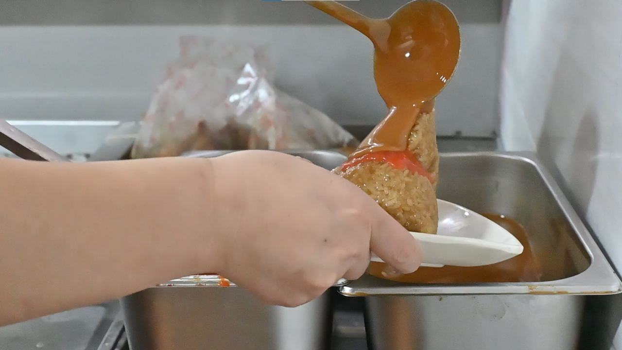 泉州的肉粽以其独特的味道和丰富的馅料而闻名。粽子里的配料包括五花肉、香菇、蛋黄等。香糯鲜甜的口感让人不自禁想再吃一颗,并配上一碗牛肉羹。牛肉羹也是泉州一道独特的小吃,其选用牛肉、地瓜粉等原料制成,肉质口感滑嫩。通过与店老板的对话,成员们还了解到了牛肉羹在泉州民间美食中的地位,感悟扎根在闽南文化中“爱拼敢赢”的精神。