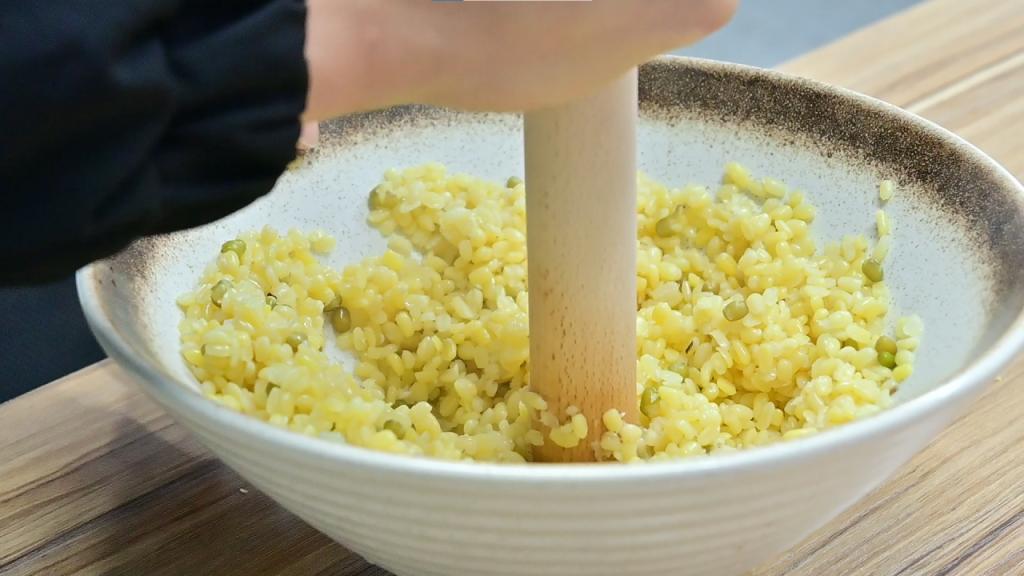 将提前泡好的绿豆去皮、沥水,反复碾碎、捣磨后,加入相应的调料,放入锅中反复翻炒,导入模具,并通过冰箱冷藏一阵子,甜而不腻的冰饼就大功告成了。