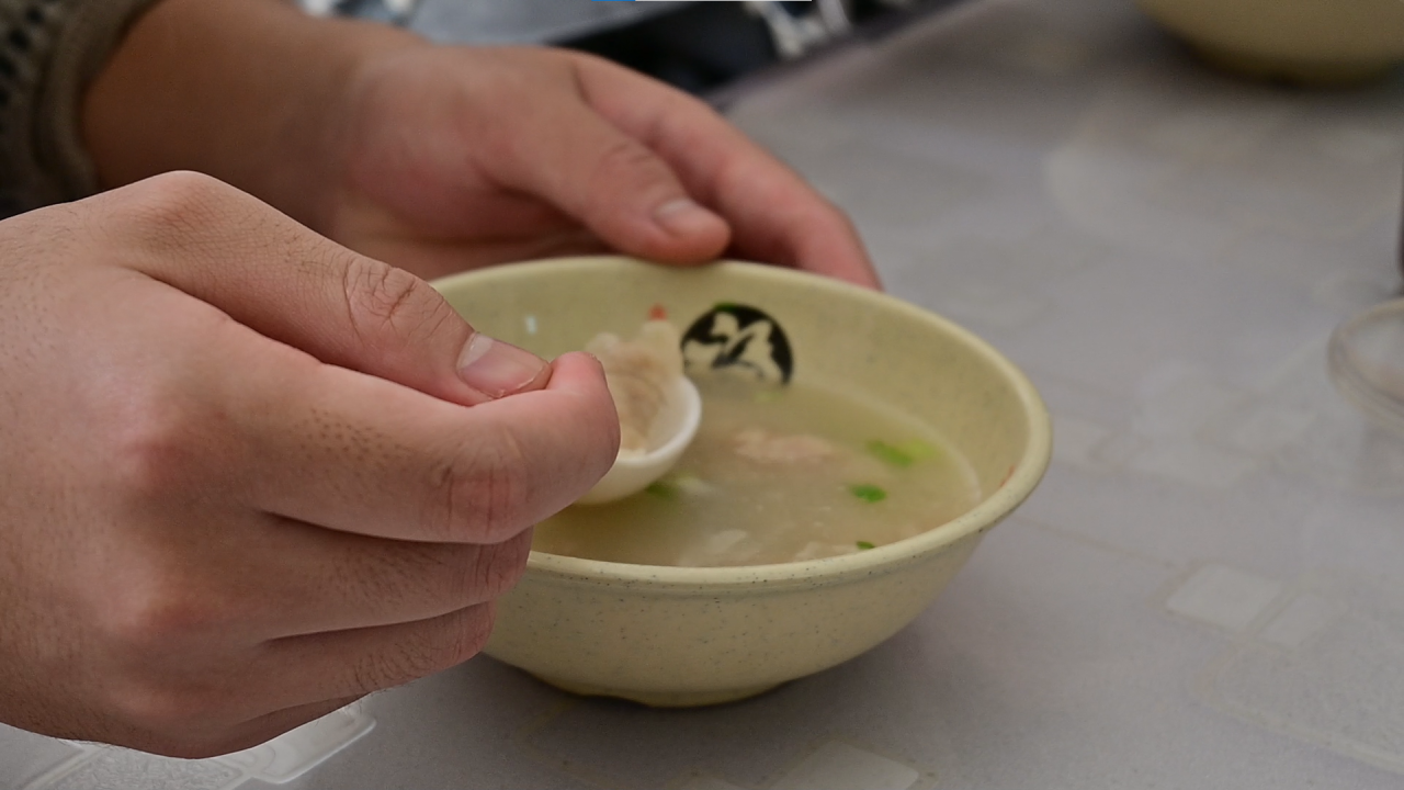 肉燕是一种形似飞燕的传统特色小吃,其主要原料为瘦肉、番薯粉等,尝起来口感细腻,肉质鲜嫩。来到这儿,成员们首先向店主请教了肉燕的制作工艺,随后,大家在店主的指导下亲自参与了包肉燕的过程,并品尝到了美味的肉燕汤,成员们深刻体会到了手工艺者的耐心和匠心。那一颗颗肉燕饱含着家的味道,饱含着对彼此祝福,也代表着满满的福气,象征着每个平凡人对美好生活的追求与热爱。