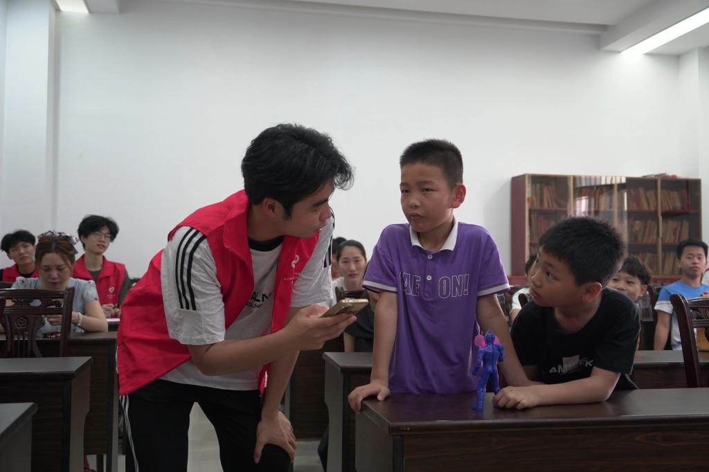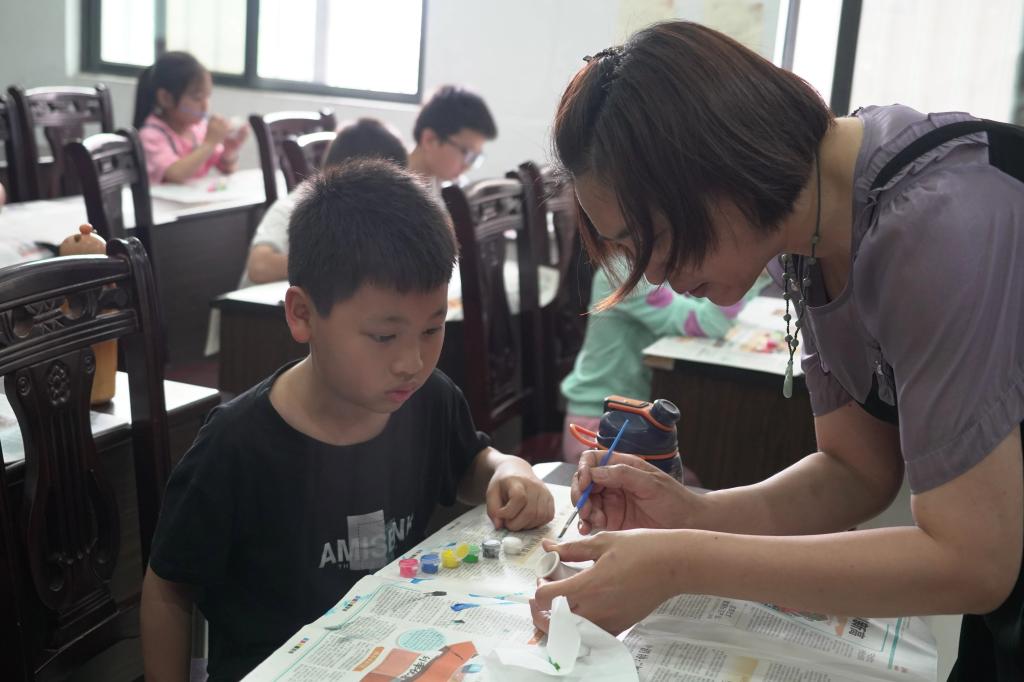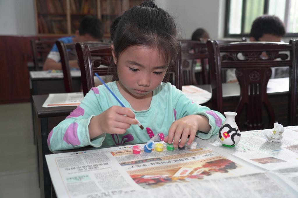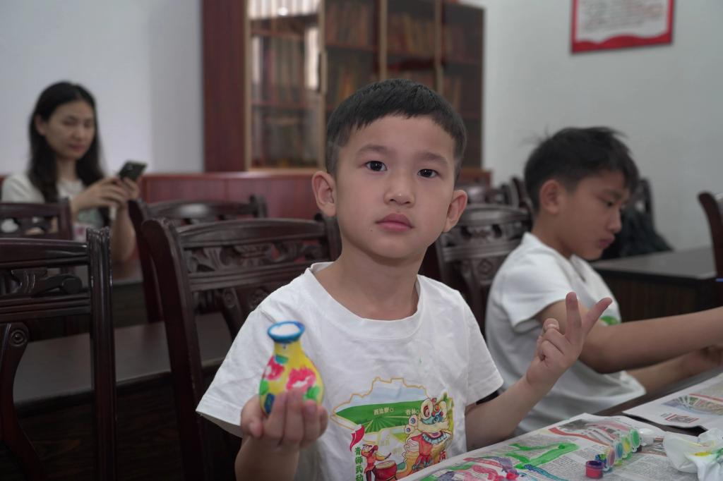 到了手工环节,小朋友们在志愿者指导下动手绘制小花瓶,小朋友们发挥着创意,全神贯注地在陶瓷罐上涂抹绘制。志愿者们穿梭在孩子们之间,耐心指导,让每个孩子都能享受绘制的过程。