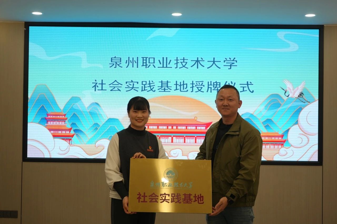在聘任仪式上,双馨书院与延泽社区进行泉州职业技术大学社会实践基地授牌仪式,以此深化校地合作、赋能青年成长,勉励青年学子在实践中厚植家国情怀。未来,学校将持续打造"实践育人共同体",助力青年学子在社会大课堂中书写青春答卷。