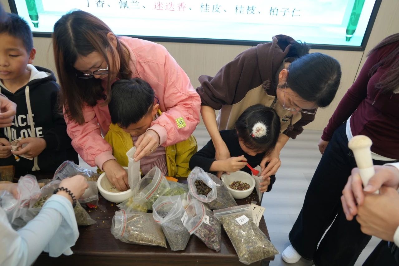 在活动现场,泉州职业技术大学双馨书院“医”路生花中医药知识宣讲团与晋江市中西医结合医院的医生为到场的亲子进行中医药知识普及,并邀请社区亲子们在志愿者的指导下体验了中医香囊的制作及刮痧,现场气氛欢乐融洽,非遗文化在社区居民间得到了有效输出。