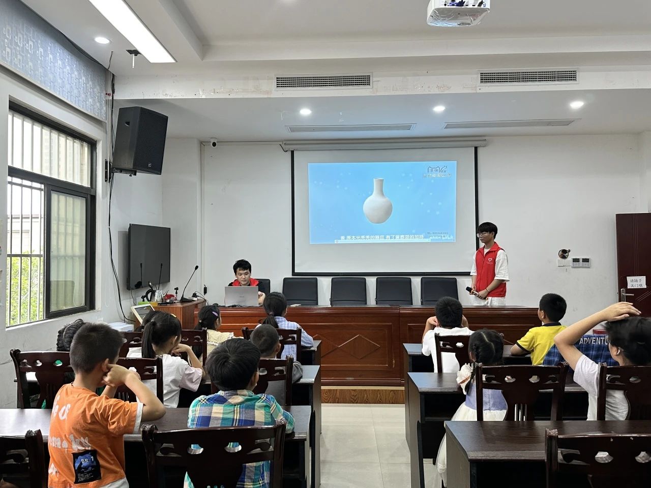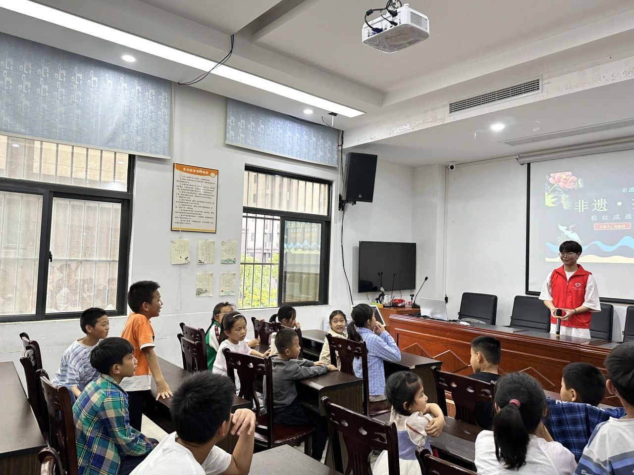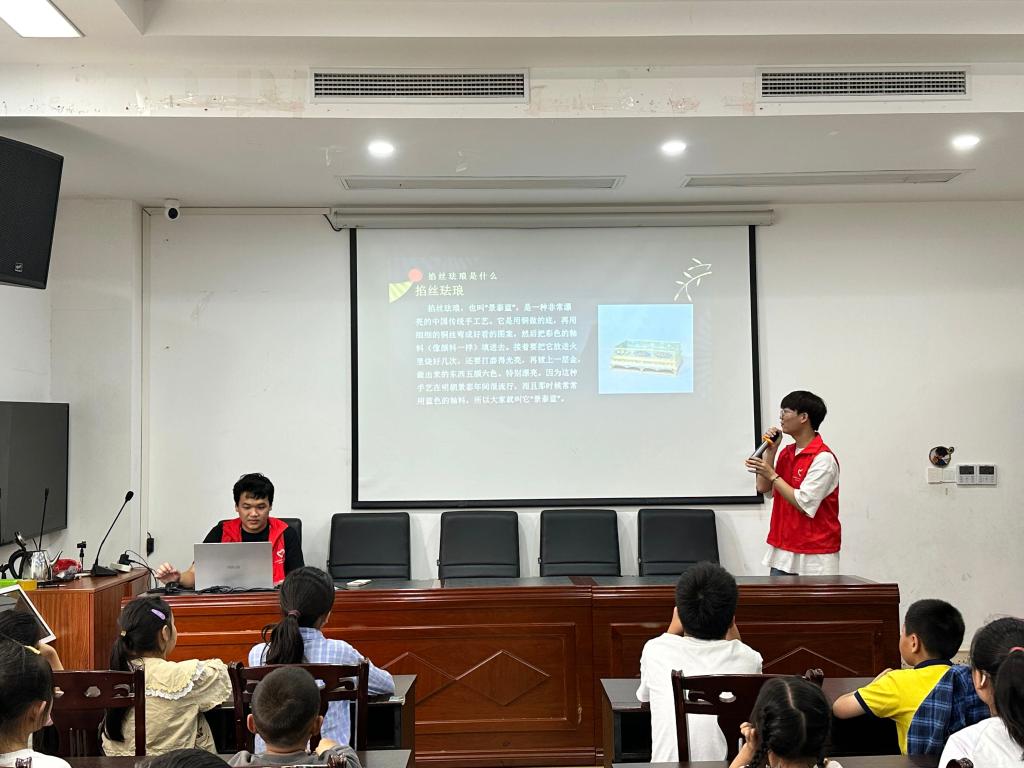 为了帮助孩子们更好地投入体验氛围,志愿者们特别设计了趣味互动游戏——“掐丝珐琅词语造句抢答”。志愿者依次抛出与掐丝工艺相关的关键词,如“纹样”“匠心”“非遗”“釉彩”等,孩子们抢答并尝试造句,在一片欢声笑语中,孩子们的语言表达能力得到了锻炼,同时在轻松的氛围中加深了他们对非遗的理解。