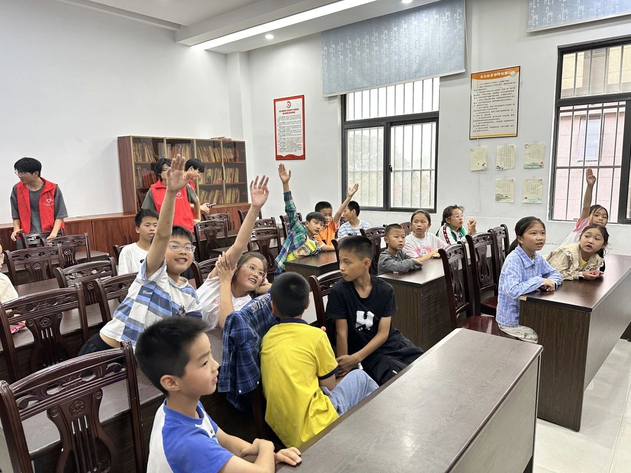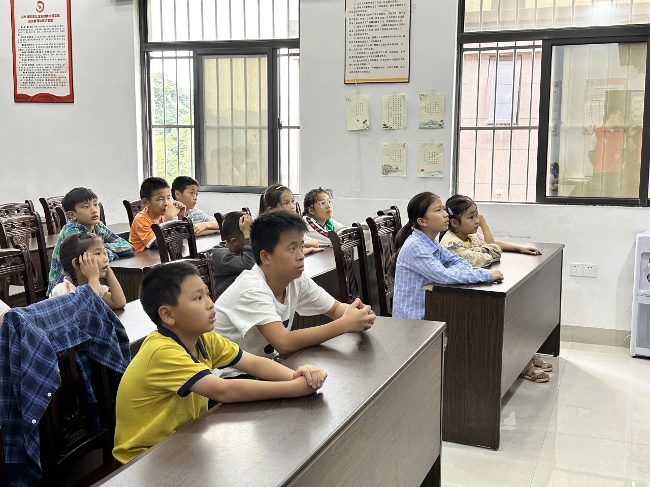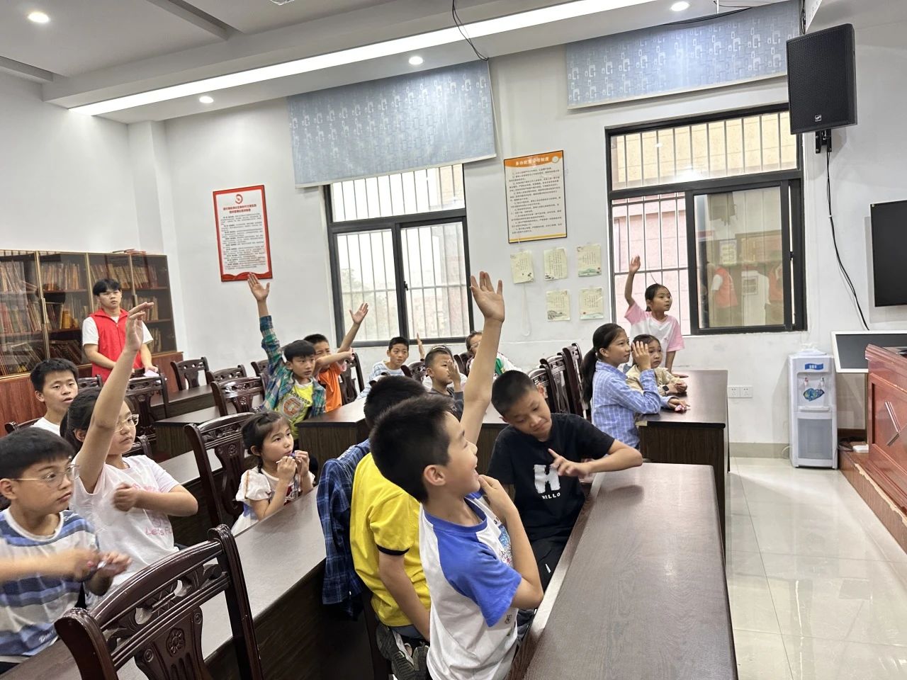 为了帮助孩子们更好地投入体验氛围,志愿者们特别设计了趣味互动游戏——“掐丝珐琅词语造句抢答”。志愿者依次抛出与掐丝工艺相关的关键词,如“纹样”“匠心”“非遗”“釉彩”等,孩子们抢答并尝试造句,在一片欢声笑语中,孩子们的语言表达能力得到了锻炼,同时在轻松的氛围中加深了他们对非遗的理解。