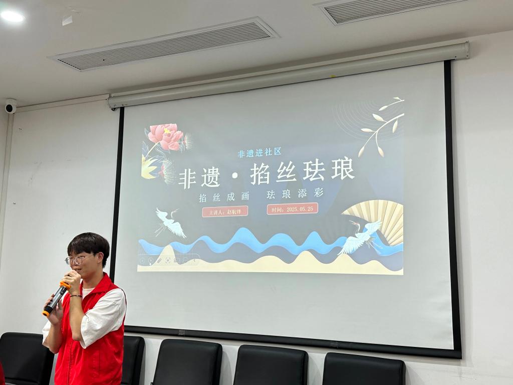 为深入推进院镇共建,弘扬中华优秀传统文化,推动非遗技艺走进社区、扎根社区,磁灶镇团委联合双馨书院团委、晋爱志愿服务队推出了非遗进社区系列活动,2025年5月25日下午14:30,双馨书院24级新能源2班在磁灶镇延泽社区开展了“釉间游丝录,一线一色皆故事”非遗进社区第三期活动。本期活动以掐丝珐琅为主题活动,让社区儿童在亲身体验中感受非遗魅力,增强文化认同。