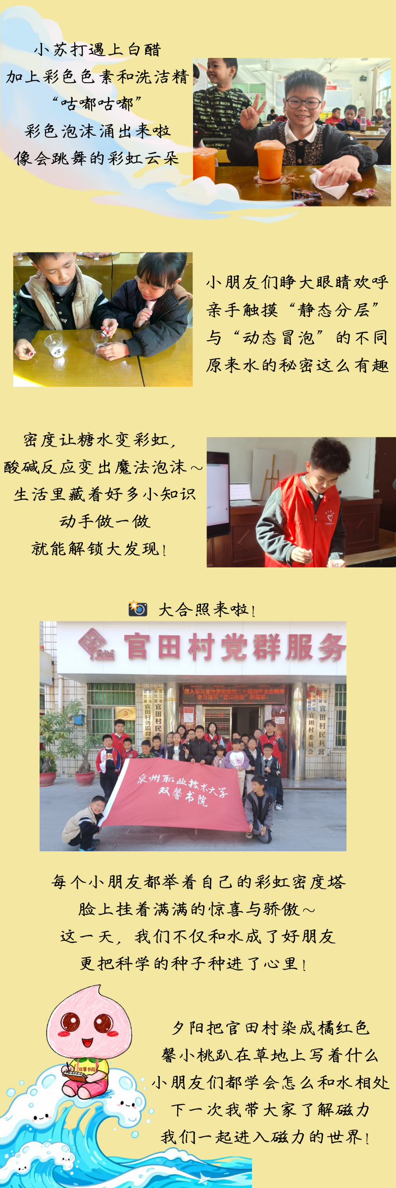 社会实践 当前位置: 书院首页 >> 书院特色 >> 正文 大学生社区实践计划 | 馨小桃在官田③:与清水流的神奇邂逅! 作者:心理工作站 编辑:双馨书院 来源:双馨书院 发布日期:2025-12-25 点击: 上一篇:大学生社区实践计划 | 馨小桃在官田②:糟糕!我们误入了静电世界! 下一篇:大学生社区实践计划 | 馨小桃在官田④:磁!铁!魔!术!
