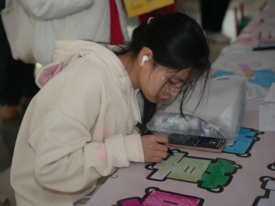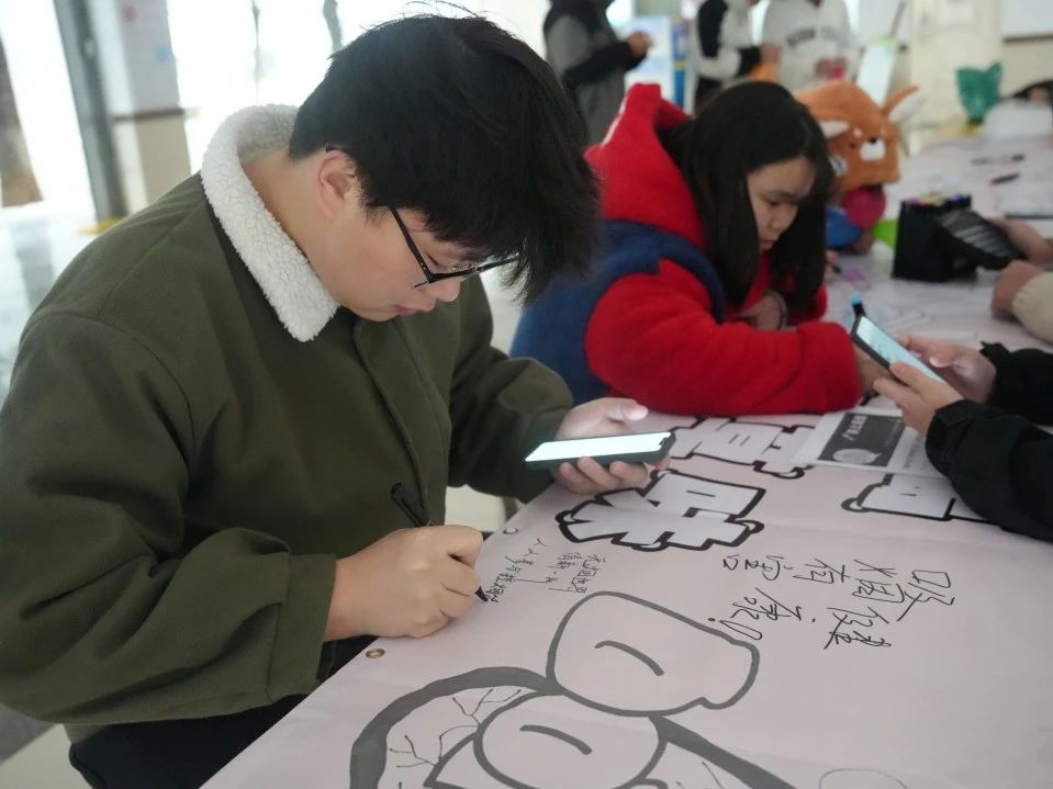 在第二个环节里,同学们充分发挥想象力,有的同学用鲜明的色彩给禁烟图案上色,用强烈的视觉冲击传递禁烟信息;有的同学则在横幅上画出自己对 “禁烟” 的独特理解,一幅幅创意十足的画作展现出同学们对无烟校园的美好期许;还有不少同学写下了简洁有力的禁烟标语,如 “吸烟有害健康,勿让烟味染校园”“拒绝烟草,拥抱健康未来” 等。现场热闹非凡,大家用手中的画笔,共同勾勒出心中无烟校园的美好蓝图。