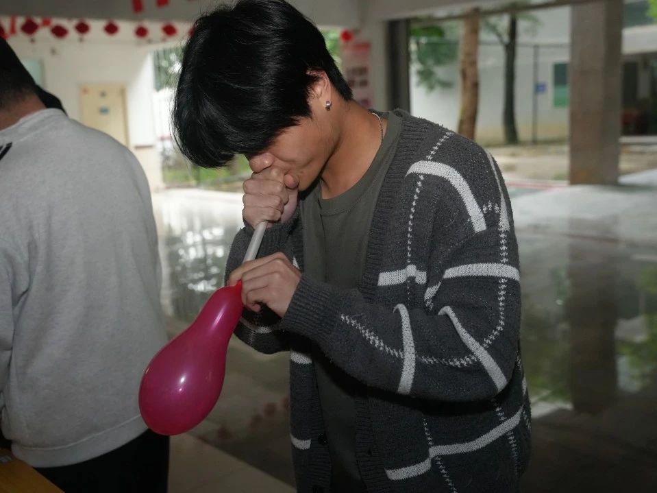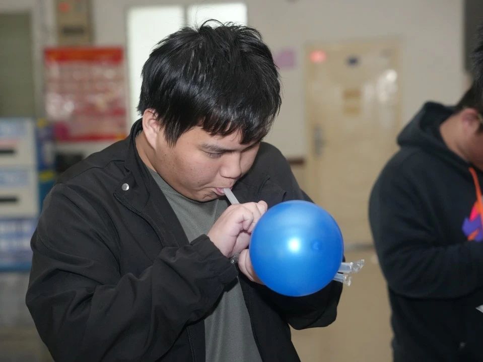 在第一个环节里,每位参与者都领取了小号(模拟长期吸烟者)、中号(模拟二手烟暴露者)、大号吸管(正常呼吸状态)以及三个相同气球。当同学们使用不同吸管吹气球时,明显感受到呼吸困难程度的差异。通过这个简单的挑战,同学们深刻体验到了吸烟者的呼吸困境,直观体会到吸烟对呼吸系统的危害,也更加坚定了远离烟草的决心。