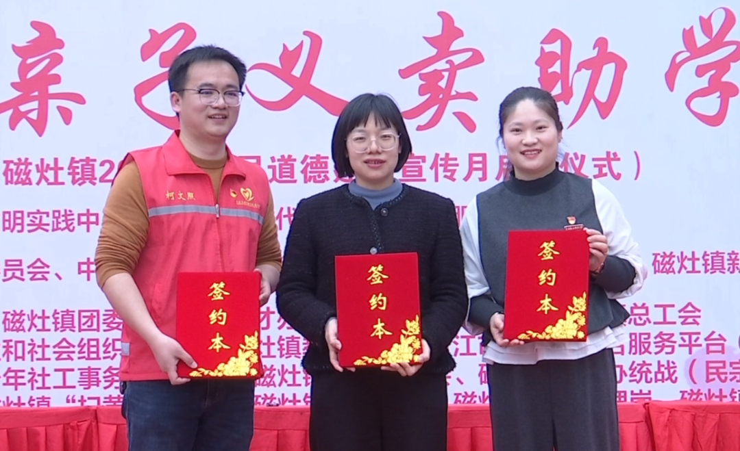2024年3月3日下午,泉州职业技术大学双馨书院受邀参加“弘扬雷锋精神,赓续青春传承”磁灶镇学雷锋志愿服务暨第七届亲子义卖助学活动,在此次活动中,泉州职业技术大学双馨书院团委与磁灶镇团委、磁灶镇志愿者协会在磁灶镇法治文化广场签署三方共建协议,泉州职业技术大学双馨书院党总支书记罗永珍、团委书记郭晓聪出席本次活动。