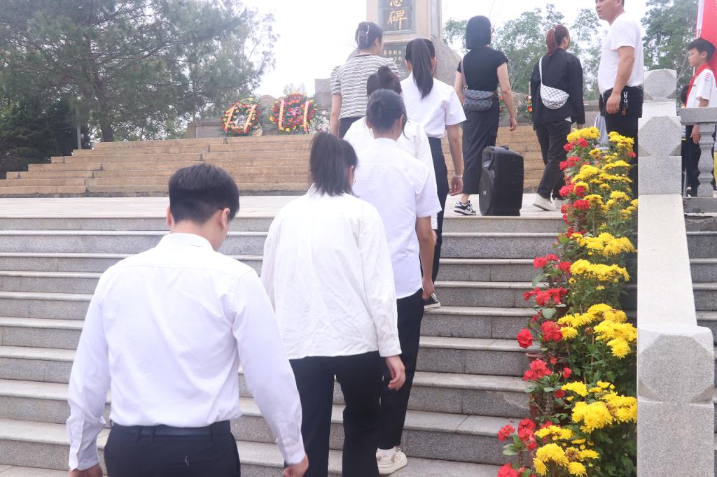 敬献花圈后,全体成员肃立在纪念碑前,怀着崇敬的心情,向英烈们默哀,鞠躬致敬。默哀毕,全体人员缓步走向烈士纪念碑,依次将鲜花整齐地摆放在纪念碑前,深切缅怀英雄功绩。接着,全体人员缓缓绕行纪念碑瞻仰先烈,感受他们为国家和人民做出的伟大贡献。