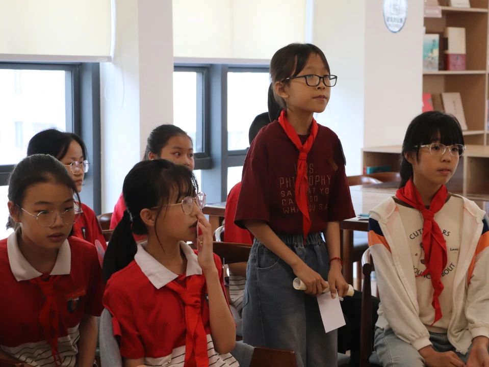 本次主题活动精心设计了四大环节:一是“阅读破冰:名著探秘”——参与者通过抽取名著角色、事件卡牌组队,迅速打破彼此之间隔阂。二是“声韵对对碰”——以声母接龙激发思维,展现学生丰富词汇量。三是“一‘词’到底”——通过成语描述与接龙,考验大家成语积累与反应能力。四是“脑洞故事趴”——各组依图卡接力创编故事。现场创意频出、精彩纷呈。