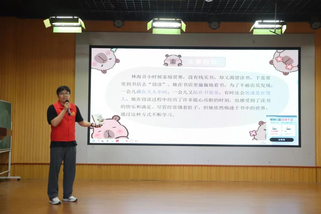 2025年4月27日下午,双馨书院学生党员走进梅里中心小学,开展“书香引航,艺彩筑梦”主题活动,以文化滋养童心。在书籍分享会上,学生党员陈伊蕾、罗若涛化身“领读人”,以《窃读记》《小王子》为引,讲述书中智慧,带领孩子们了解书中片段,在互动中激发阅读兴趣与表达能力。分享结束后,孩子们在学生党员们的指导下,用画笔在书签上描绘“红色故事”“童话世界”,创作完成后与作品合影留念,方寸之间尽显童真与创意。