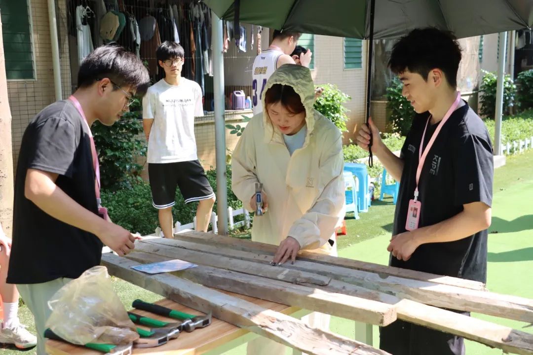 两项工科实操项目要求在限时内完成“长板钉3枚钉子”“椅子螺丝全拧完”任务,侧重手部力量与工具使用规范。活动模拟真实工程场景,帮助学生积累实操经验,暴露部分学生“理论强、动手弱”的短板,为后续实践教学提供改进方向。