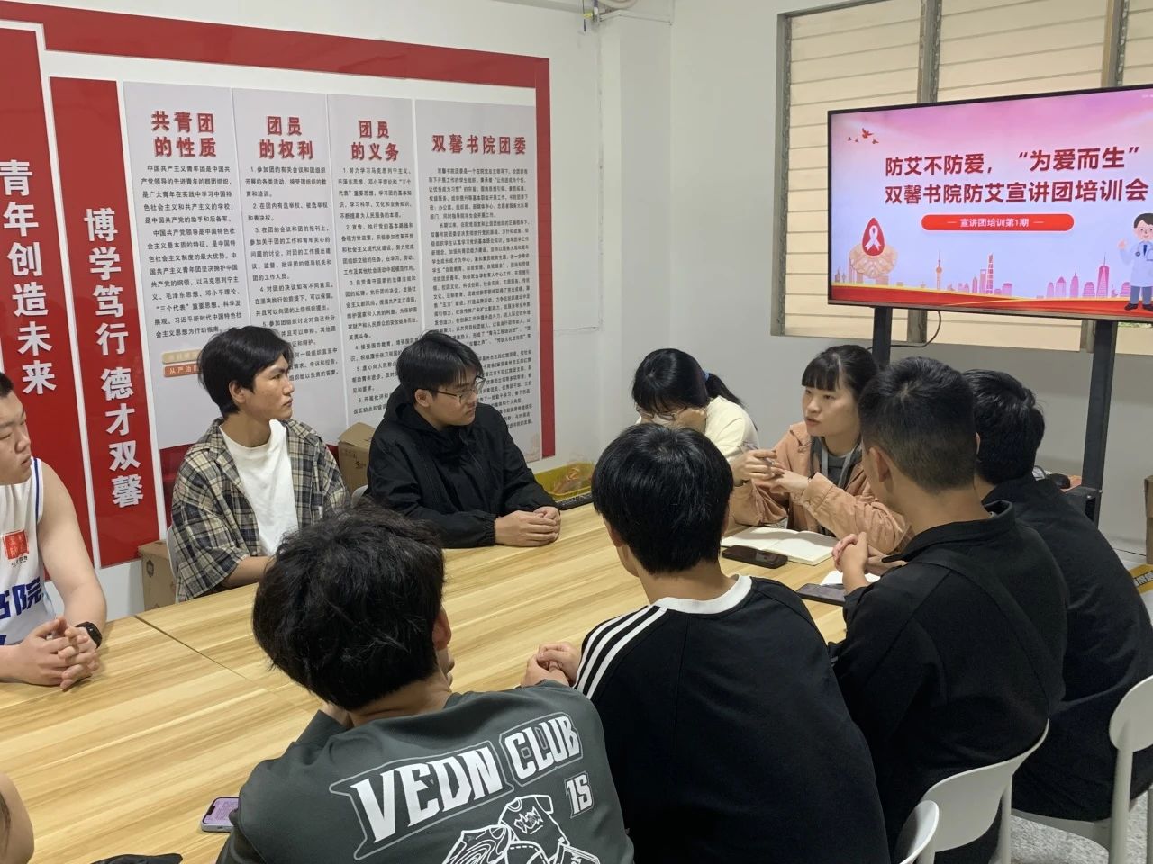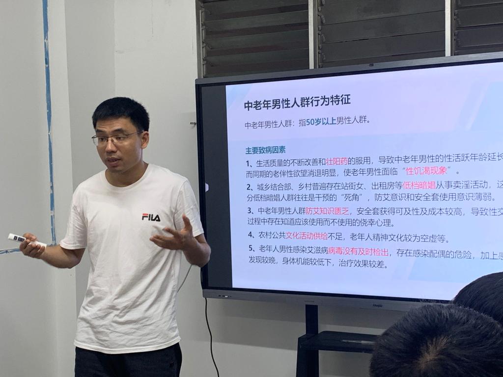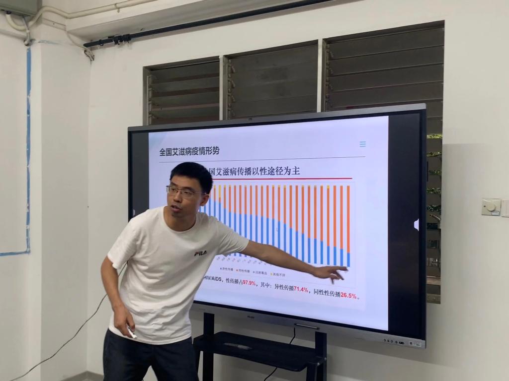 在第二次培训中,双馨书院特邀晋江市疾控中心专业导师叶福全为宣讲团成员量身定制课程。培训聚焦艾滋病病理知识、传播途径及防治政策,专家以数据案例结合科普视频的形式,深入浅出解析核心要点。学员们系统掌握艾滋病窗口期、检测途径、避孕套正确使用方法等关键信息,为后续宣讲内容准确性打下坚实基础。疾控中心还特别分享近年晋江市防艾工作成果与挑战,增强学员的社会责任感。