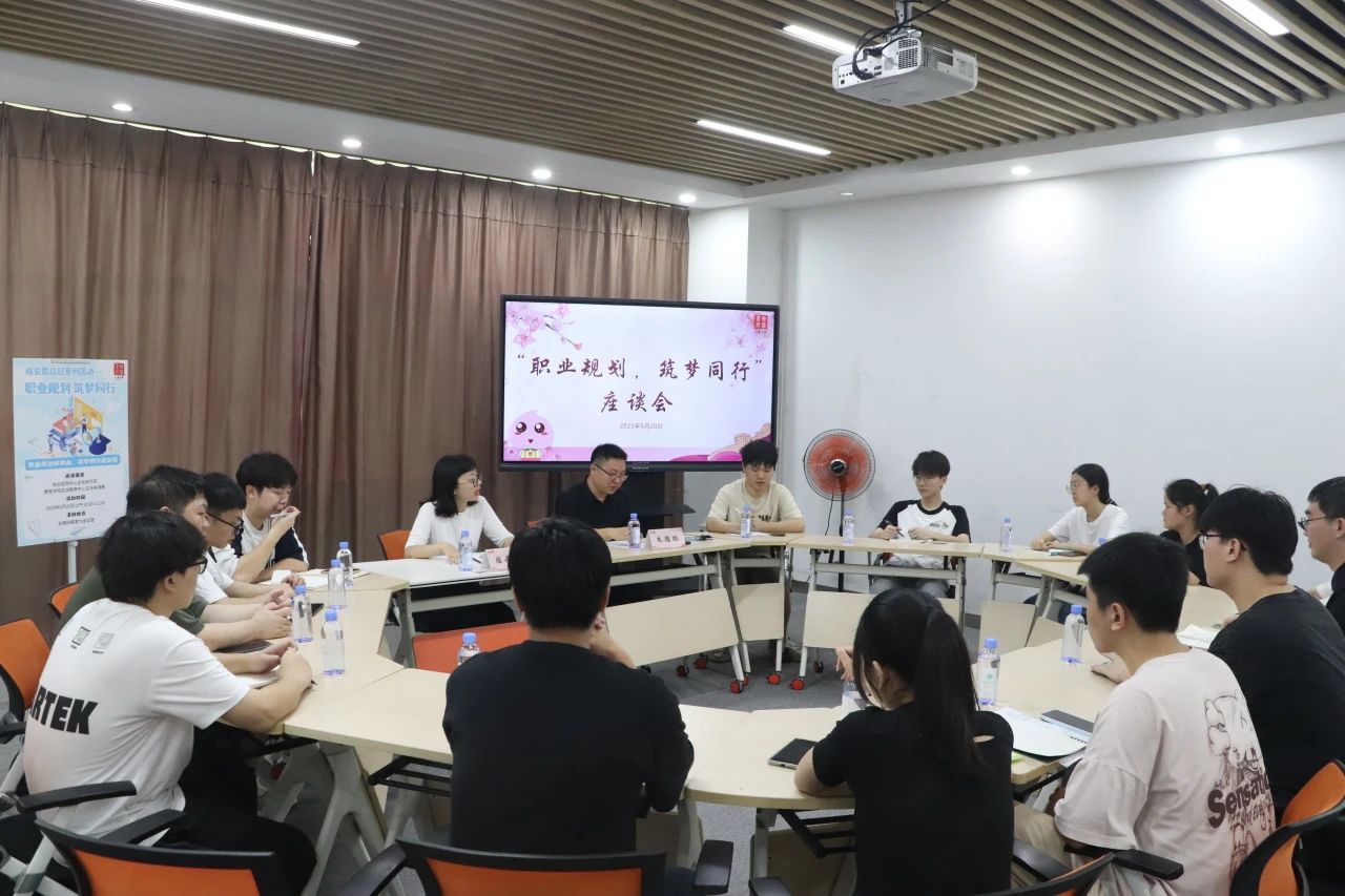 在充满挑战的青春征程中,职业发展规划如同灯塔,指引着莘莘学子前行的方向。为帮助同学们梳理职业发展思路,解答职业选择和规划中的困惑,2025年5月20日,双馨书院组织开展了一场职业发展规划专题座谈会,本次座谈会邀请了教务处就业指导中心主任陈丹花老师和教育学院生涯教育中心主任朱德鹏老师书院同学们面对面展开思想碰撞,为同学们点亮了职业探索之路的明灯。