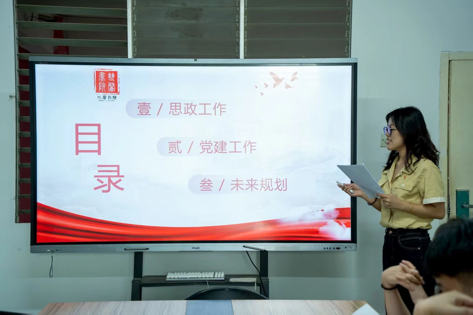 陈依嫔老师围绕所带的24级车服、新能源、智能网联专业的学生整体情况与班级建设管理、导师导生委员会、书院秘书、兼职档案研究员等工作成效进行总结,并结合上半年的工作情况对下半年的工作进行进一步的规划,并表示在今后的工作中,将贯彻立德树人根本任务,以导师导生委员会为枢纽,通过“朋辈引领+项目驱动"模式,在学生群体中实现“五育”的深度融合与全覆盖,为培养德智体美劳全面发展的社会主义建设者和接班人添砖加瓦。