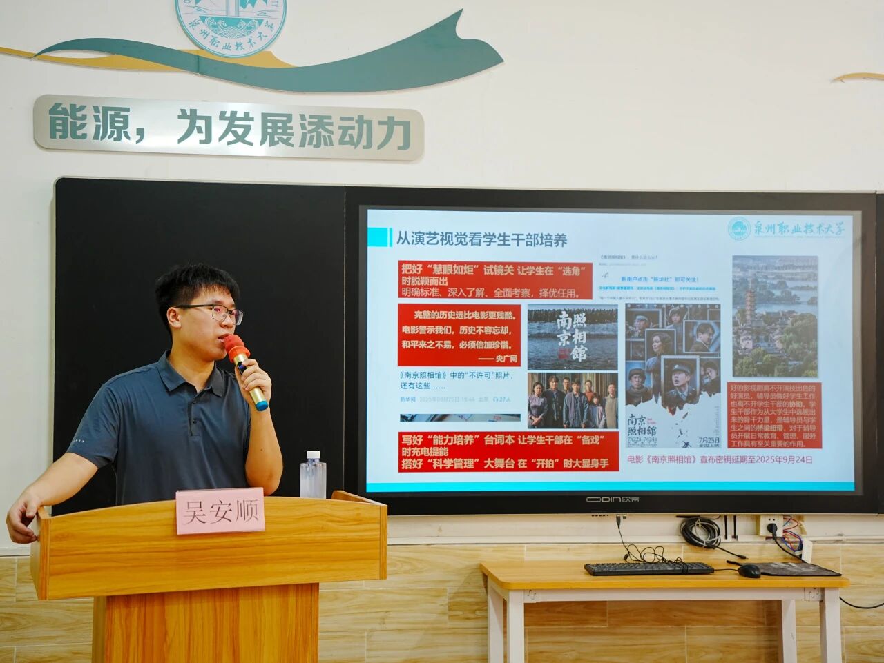 陈依嫔老师围绕学生干部如何成长为青年学子的“引领者”展开分享,并结合书院育人理念,介绍“双导”育人制。她强调,学生干部要明确多重角色定位,包括信息员、战斗员、宣传员、组织员和调解员,并在各角色中认真履职。同时,作为引领者,还需具备正确自我认知、专业能力、人格魅力,以及执行力和组织力,才能更好引领同学共同进步!通过此次分享,同学们不仅明确了成长为引领者的方向与路径,也更加坚定了在学生工作中主动担当、不断精进的决心。相信在书院的支持与自身的努力下,大家定能在服务同学、引领集体的道路上走得更稳、更远。