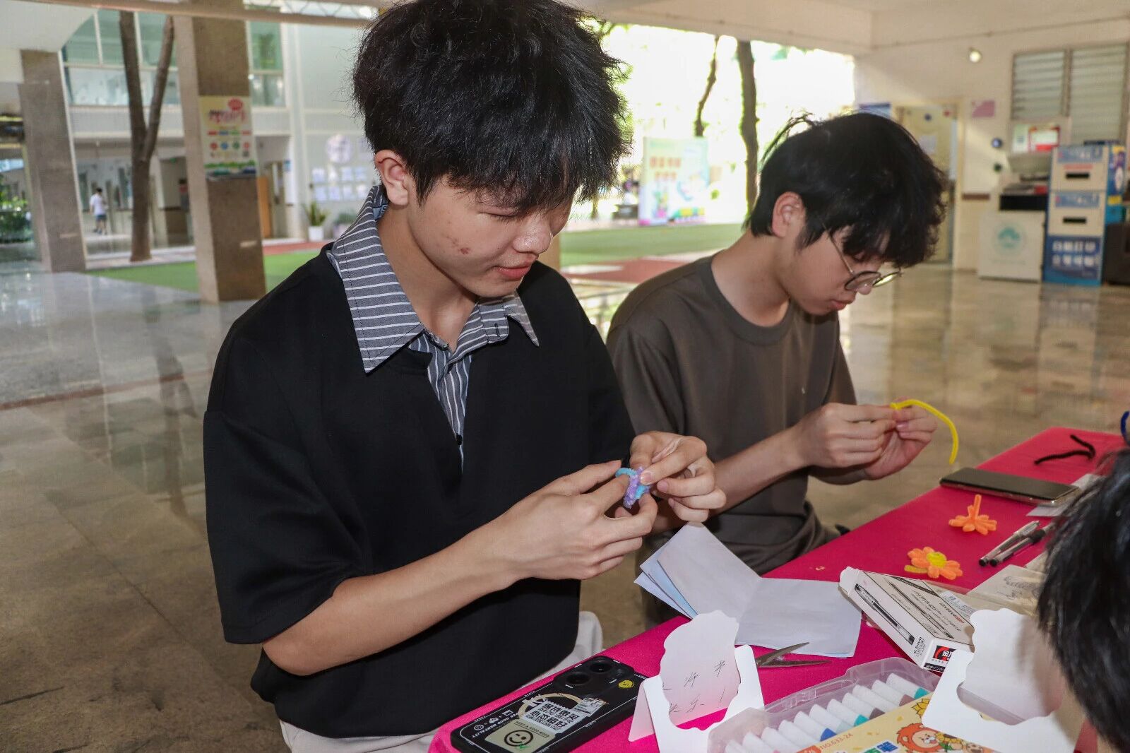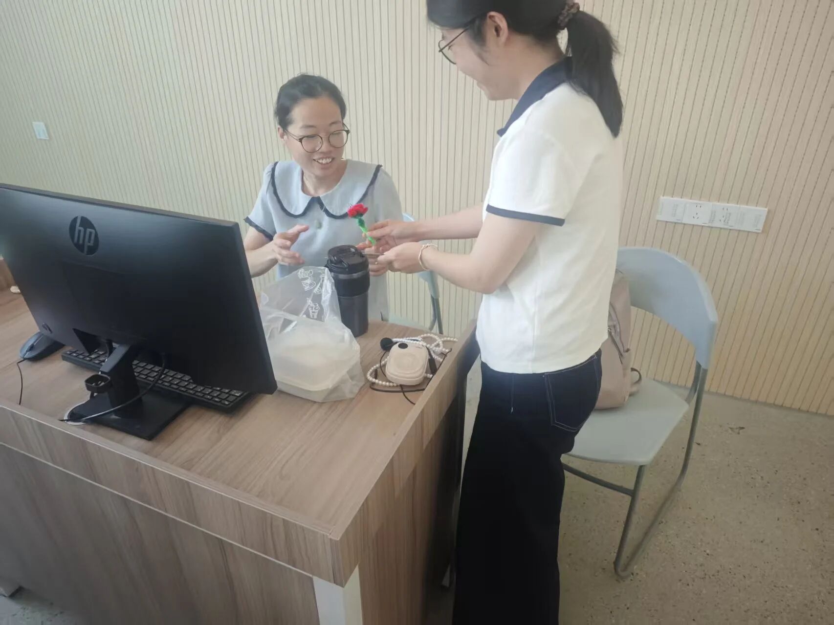 同学们用扭扭棒制作花朵,在贺卡上书写心里话,将心意融入手作礼物,老师收到时,眼里满是笑意与感动。